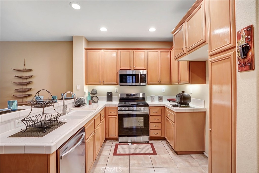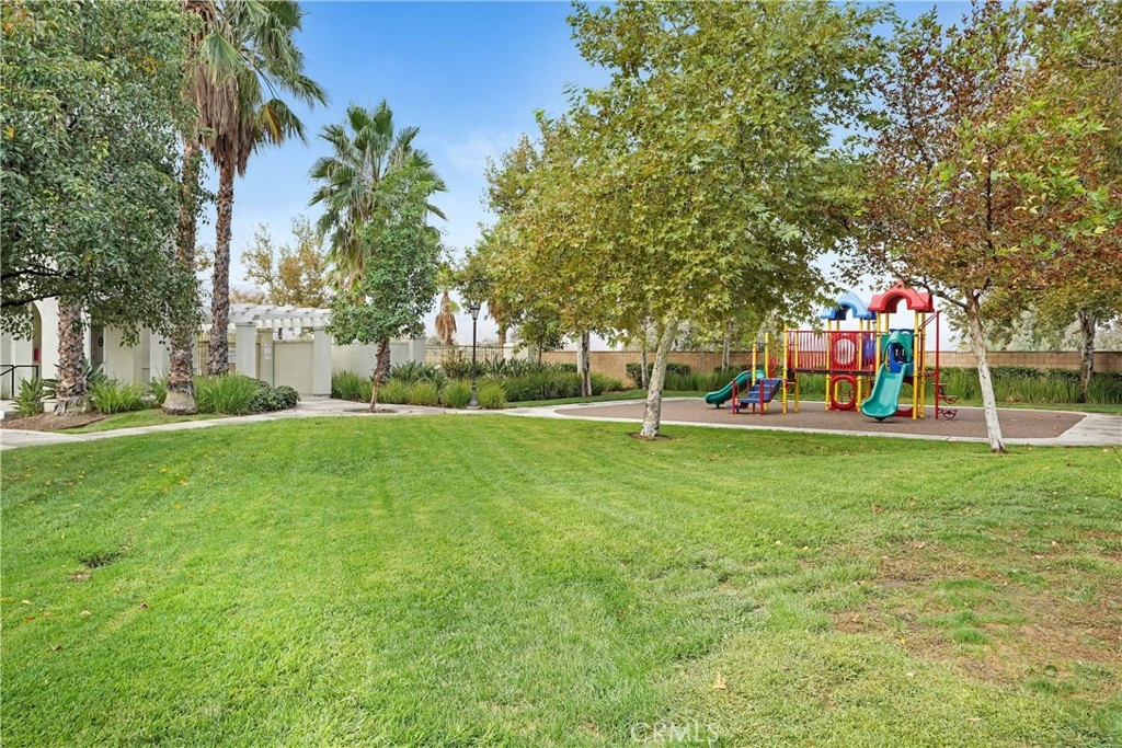 Great Corner unit with front patio offers privacy and easy access. This generous 1527 sq. ft. unit offers formal family and dinning rooms with plenty of sunlight and open floor plan. Modern Kitchen with new stainless steel appliance and ample cabinet space blends nicely into living room with fireplace. Additional 1/2 bath and laundry room conveniently located at first floor of the unit. Master bedroom with walk-in closet and master bath with dual vanity. Two additional nice size bedrooms with closets and full hall bathroom. Low property taxes and low hoa fees (trash included). Community features swimming pool, spa and play pad. Easy access to 15 fwy, restaurants and shopping . This property is perfect for all family sizes and for investor looking for low maintenance rentals.