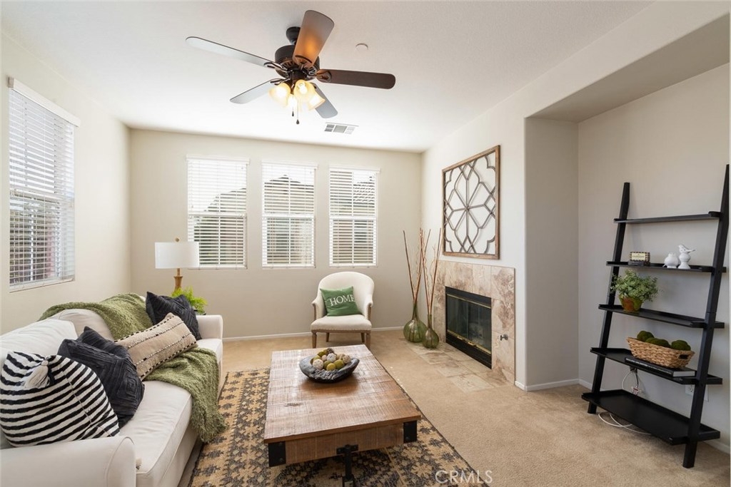 Perfect end unit condo features 2 bedrooms, 2 full bathrooms, plus an attached 2 car garage with direct access. Laundry is upstairs with bedrooms. No neighbors above or below. Nice tile floors throughout and well-kept carpeting in bedrooms. Tall ceilings, plenty of windows, and access to balcony from dining area give this condo a bright and open feel. Master bedroom is spacious and includes a master bath with dual-sink, walk-in closet, and tub/shower combo. Office niche next to kitchen is perfect for a study/craft/work area. It’s convenient to have a dedicated space for that. Fireplace in living room helps make this unit feel like home. This is a must-see condo with low HOA dues and low property taxes to top it off. Nice layout with good flow. This one won't last and is move-in ready! Easy access to freeway, shopping, and the lake. HOA includes community pool, spa, playground, and picnic area.