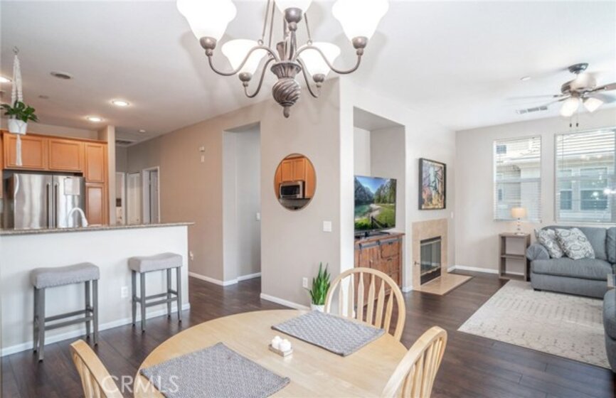 Beautiful two bedroom and two full bath condo with an office/ nook area. Open floor plan with laminate wood flooring throughout, upgraded stainless steel kitchen appliances and granite countertops. Living room features a cozy fireplace and a private covered patio. Spacious master bedroom with dual sinks and walk in closet. Both bedrooms have upgraded cellular window shades for energy efficiency. The home also has a two car garage with direct access. The community offers a pool, spa and playground area. Located near the Storm Stadium, The Links at Summerly Golf Course and the Lake Elsinore Levee hiking trial.