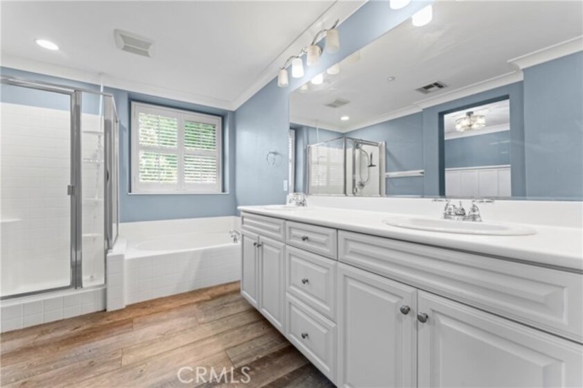 Beautifully Upgraded Condominium in Brookview Terrace – Canyon Hills Gorgeous and affordable condo located in the gated Brookview Terrace community within Canyon Hills. This FHA-approved home features a fully remodeled gourmet kitchen with custom mahogany butcher block counters, cast iron farmhouse sink, subway tile backsplash, soft-close cabinetry with upper glass doors, and an oversized walk-in pantry. The spacious living room offers custom wainscoting, a cozy fireplace, plank tile flooring, crown molding, and a designated dining area. The stairwell leads to an oversized loft—ideal for a home office or lounge— hallway has built-in storage cabinetry. Upstairs, the primary bedroom includes wood paneling detail, dual walk-in closets with built-ins, and a beautifully upgraded en-suite bathroom with dual sinks, separate shower, and soaking tub. The secondary bedroom is generously sized and features additional wainscoting. A large hall bathroom with glass door enclosure and a spacious laundry room with upper cabinets complete the upper level. Additional features include plantation shutters throughout, attached two car garage and access to resort-style amenities: clubhouse, pool/spa, gym, steam room, BBQ area, and business center. Conveniently located near shopping, dining, banks, and commuter-friendly access to the 15 Freeway. Don’t miss your chance to own this beautifully upgraded home—schedule your tour today!