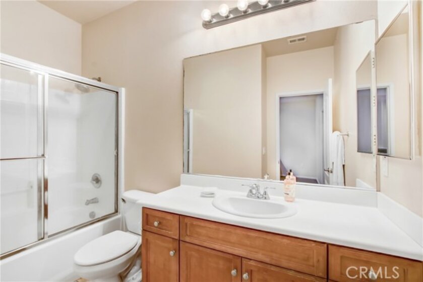 Situated in the stunning gated community of Brookview Terrace, this 3 bed/2 ½ bath condo lives like a single-family home. Step inside the covered front entrance to view an open living area of living/dining and kitchen with neutral colors and warm wood floors. Granite topped oak kitchen cabinetry provides ample food prep and storage space. Appliances include a gas cook-top, electric oven, dishwasher and microwave. There is even a one-seat breakfast bar for quick and easy meals. There is direct garage access, a convenient powder bath and a large under-the-stairs storage closet on the first level. All bedrooms are upstairs as well as a loft office space with built-in desk. The primary suite has a big walk-in closet and bathroom featuring a double vanity, separate tub and shower and private toilet. The two other bedrooms share a hallway bath with a large vanity and shower-tub. Residents of Brookview Terrace enjoy a variety of amenities including a gated swimming pool and spa with adjacent covered grilling and eating area and an outdoor fireplace. The clubhouse features a fitness center, steam room, and sauna. There is also a children’s play room next to the fitness room, a common area meeting room with indoor fireplace and library area, and a separate private work space. Brookview terrace is only 2 miles from the 15 freeway and there is convenient shopping and dining nearby. This home is priced to reflect some needed cosmetic updating including upstairs carpeting, non-working gas fireplace appliance and suggested kitchen appliance upgrading. Seller prefers to sell “as is”.