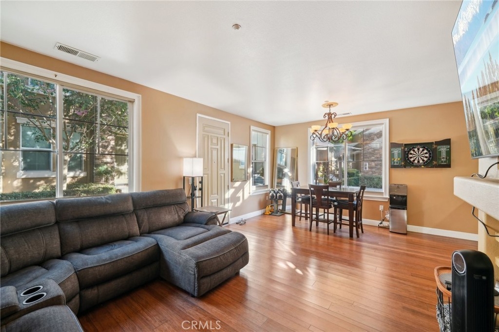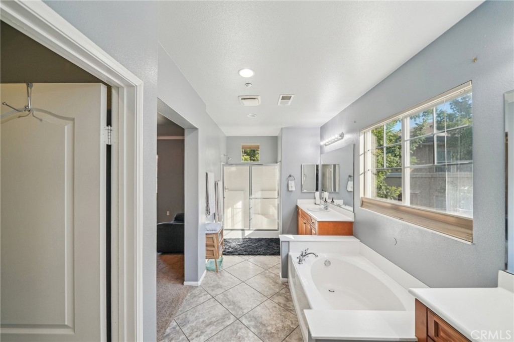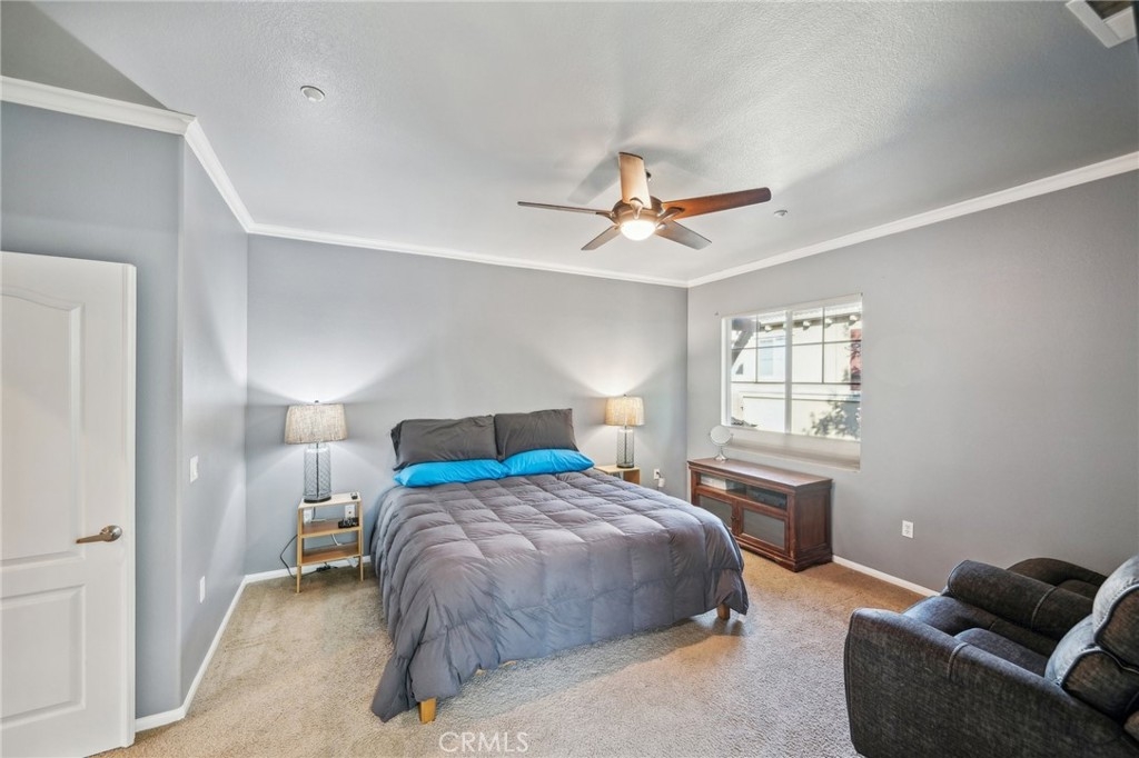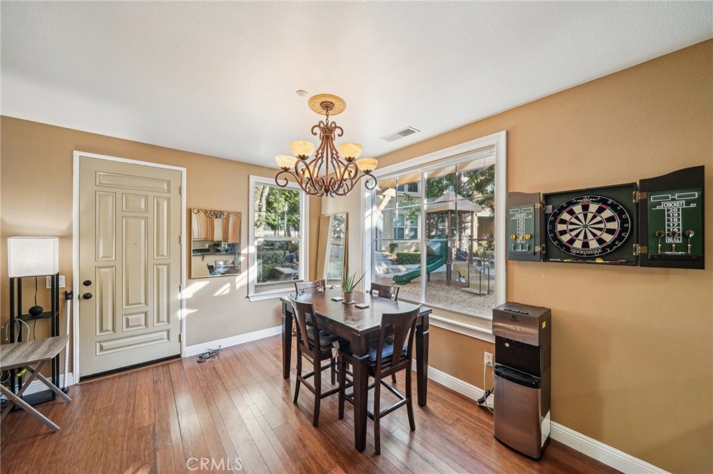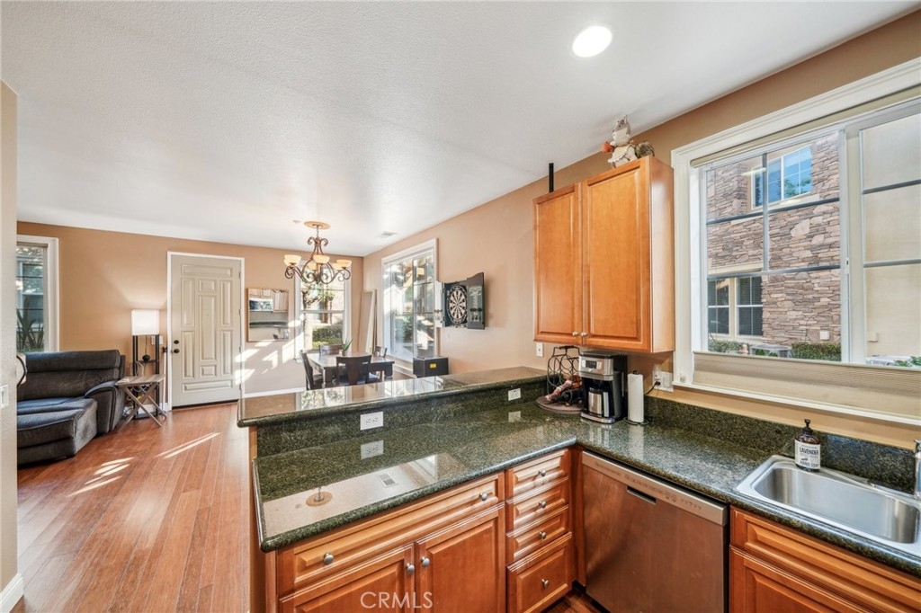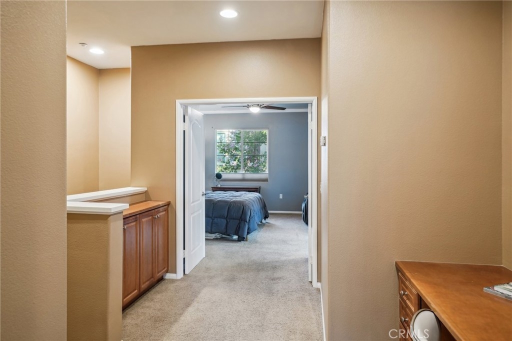 Welcome to this beautifully appointed end-unit townhome, ideally situated in the prestigious gated community of Brookview Terrace. This stunning 3-bedroom, 2.5-bathroom residence offers a blend of luxury and comfort with the privacy of only one shared wall, central AC, and an attached 2-car garage. Venture inside to an open and inviting floor plan on the main level, where the expansive kitchen seamlessly flows into the dining and living areas. The kitchen is a chef’s dream, featuring gorgeous granite countertops, a long breakfast bar, ample cabinetry, and a pantry for additional storage. The living room, with its high ceilings and cozy gas fireplace, creates a warm and welcoming atmosphere, while the beautiful laminate flooring adds a touch of elegance. A convenient half bath on the main level is perfect for guests. Upstairs, the well-designed layout ensures privacy and functionality. Two bedrooms, each with ceiling fans, are located on one side of the hallway, adjacent to a full bathroom and a separate laundry room with additional storage cabinets. The primary suite is set apart on the opposite side of the hallway, offering a serene retreat with a spacious walk-in closet, a deep soaking tub, dual vanities, and a standalone shower. An additional study/office area with a built-in desk and extra storage completes the upper level. As a corner unit, this home is bathed in natural light, thanks to additional windows on both floors. Brookview Terrace offers an array of exceptional amenities, including a private recreation center, resort-style pool and spa with cabanas, a clubhouse, fitness center, steam room, sauna, playground, and picnic areas with BBQs. Located near top-rated schools, shopping, dining, and with easy access to the freeway, this home is also close to Canyon Hills’ sports park, splash pad, dog park, and numerous hiking and trails. You will love this nice and Move-In ready home in a great location- come see it today!