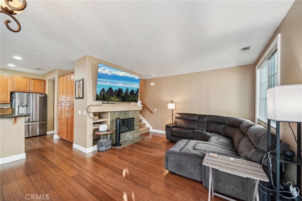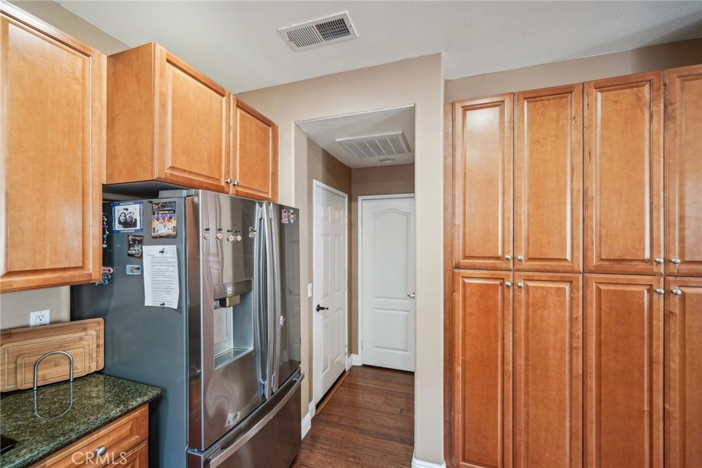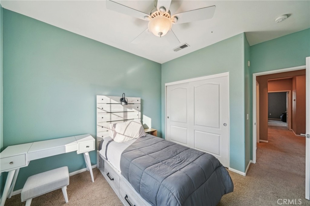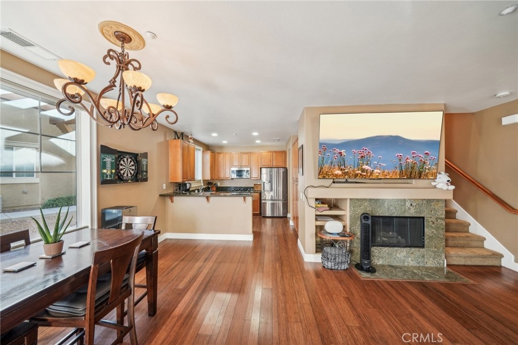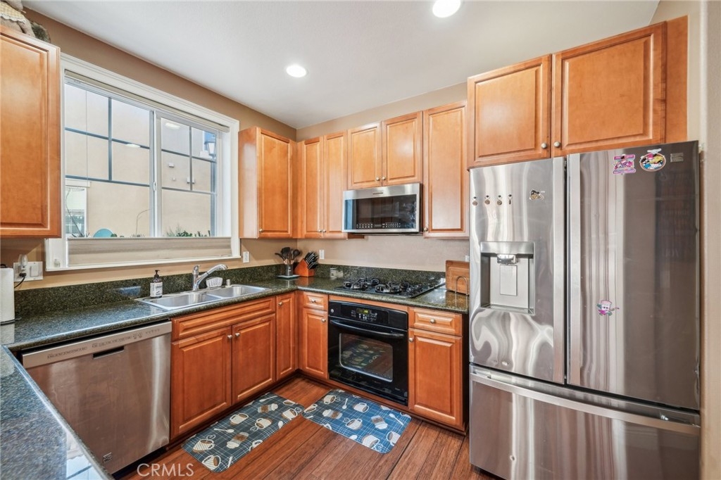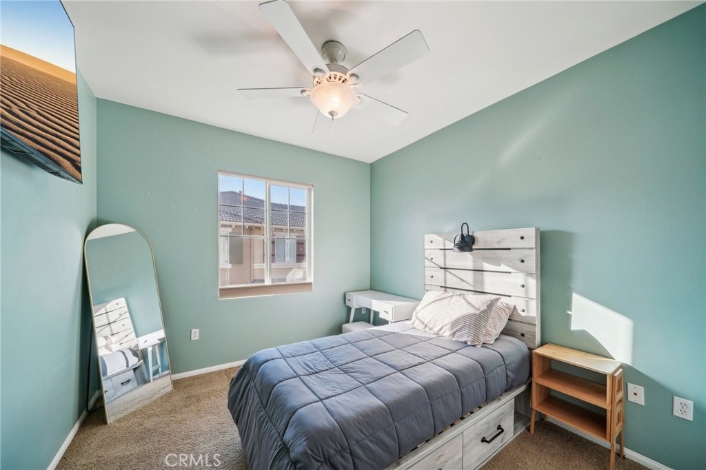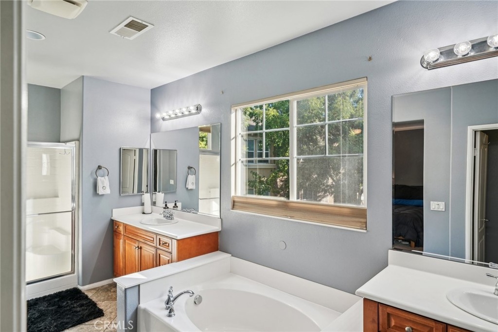 Welcome to this beautifully appointed end-unit townhome, ideally situated in the prestigious gated community of Brookview Terrace. This stunning 3-bedroom, 2.5-bathroom residence offers a blend of luxury and comfort with the privacy of only one shared wall, central AC, and an attached 2-car garage. Venture inside to an open and inviting floor plan on the main level, where the expansive kitchen seamlessly flows into the dining and living areas. The kitchen is a chef’s dream, featuring gorgeous granite countertops, a long breakfast bar, ample cabinetry, and a pantry for additional storage. The living room, with its high ceilings and cozy gas fireplace, creates a warm and welcoming atmosphere, while the beautiful laminate flooring adds a touch of elegance. A convenient half bath on the main level is perfect for guests. Upstairs, the well-designed layout ensures privacy and functionality. Two bedrooms, each with ceiling fans, are located on one side of the hallway, adjacent to a full bathroom and a separate laundry room with additional storage cabinets. The primary suite is set apart on the opposite side of the hallway, offering a serene retreat with a spacious walk-in closet, a deep soaking tub, dual vanities, and a standalone shower. An additional study/office area with a built-in desk and extra storage completes the upper level. As a corner unit, this home is bathed in natural light, thanks to additional windows on both floors. Brookview Terrace offers an array of exceptional amenities, including a private recreation center, resort-style pool and spa with cabanas, a clubhouse, fitness center, steam room, sauna, playground, and picnic areas with BBQs. Located near top-rated schools, shopping, dining, and with easy access to the freeway, this home is also close to Canyon Hills’ sports park, splash pad, dog park, and numerous hiking and trails. You will love this nice and Move-In ready home in a great location- come see it today!