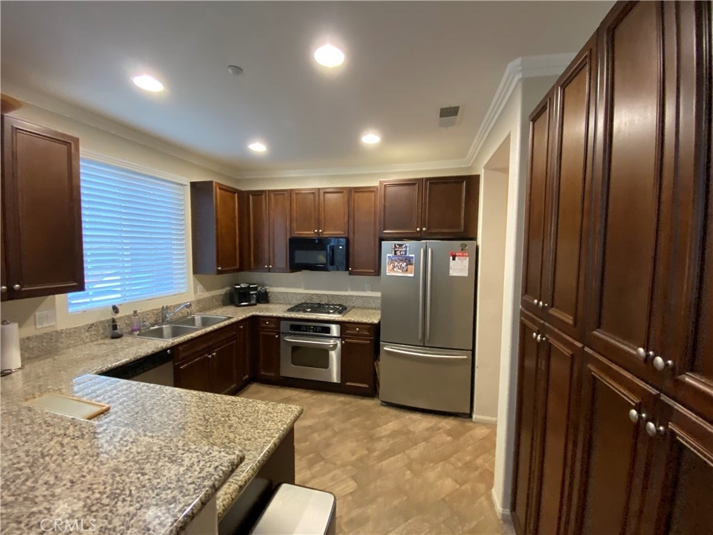 Wonderful Canyon Hills corner-unit located in the gated community of Brookview Terrace. This 1633 sqft 3 bedroom 2.5 bath features a plethora of appealing features both inside and out. Starting with location, this unit could not be better. Tucked in the corner with only one adjoining neighbor, two guest parking spots directly behind it, play area right outside the front door. Inside you will find a functional floorpan trimmed with niceties and upgrades. Upon entering you'll find wall-to-wall wood tile flooring downstairs, granite slab counter tops, paneled doors, electric start gas fire place, adjoined 2 car garage with private entry. Upstairs features luxury barber carpet, recessed lighting, landing with work area, large master bedroom with ceiling fan, master bathroom with a dual sink vanities, stand alone luxury tub, private shower stall and large walk in closet. Tile floors in bathroom and laundry rooms, bedrooms feature ceiling fans, and paneled closet doors and blinds. This home is a huge value for an affordable price. The Canyon Hills community features multiple family parks and gated pools along with an award-winning sports park. Close to freeways and shopping, this property offers you the ability to enjoy a multitude of community features at one of the most affordable prices in the area.