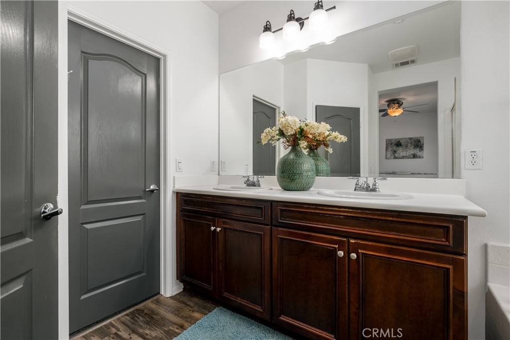 Welcome home to this spacious two-story condo, featuring modern upgrades and comfortable living. Equipped with 2 bedrooms (dual primary suites), 2.5 baths, upstairs laundry and an office niche in the upstairs hall area. Entertain or relax in the spacious main living area which features an open concept that seamlessly flows from living room to dining area and kitchen spaces. The kitchen is equipped with beautiful granite countertops, full tile backsplash, stainless steel appliances, cherry wood cabinets, and an eat up bar area – perfect for casual dining or entertaining guests. The living room features a gas fireplace with large mantle and upgraded built-in surround sound. You will also find a half bath located on the main floor as well as a 2 car garage which is conveniently attached right off the kitchen. Upstairs you will find two generously sized primary suites, each offering its own private bath and ample walk-in closet space, providing comfort and privacy for families and/or guests. The generous sized upstairs hall area features a laundry closet, linen storage and a built-in desk/office niche. Nestled within the beautiful master planned community of Canyon Hills you will find Brookview Terrace community which offers the perfect balance of convenience, comfort, and family-friendly charm. Featuring resort-style amenities including a swimming pool, spa, clubhouse, gym and gated security – all designed to enhance your leisure time of relaxation and/or recreation. Located close to shopping, dining, hiking trails , biking trails and Canyon Hills sports park which features newly renovated turf soccer and football fields, two baseball diamonds, splash pad and dog park.