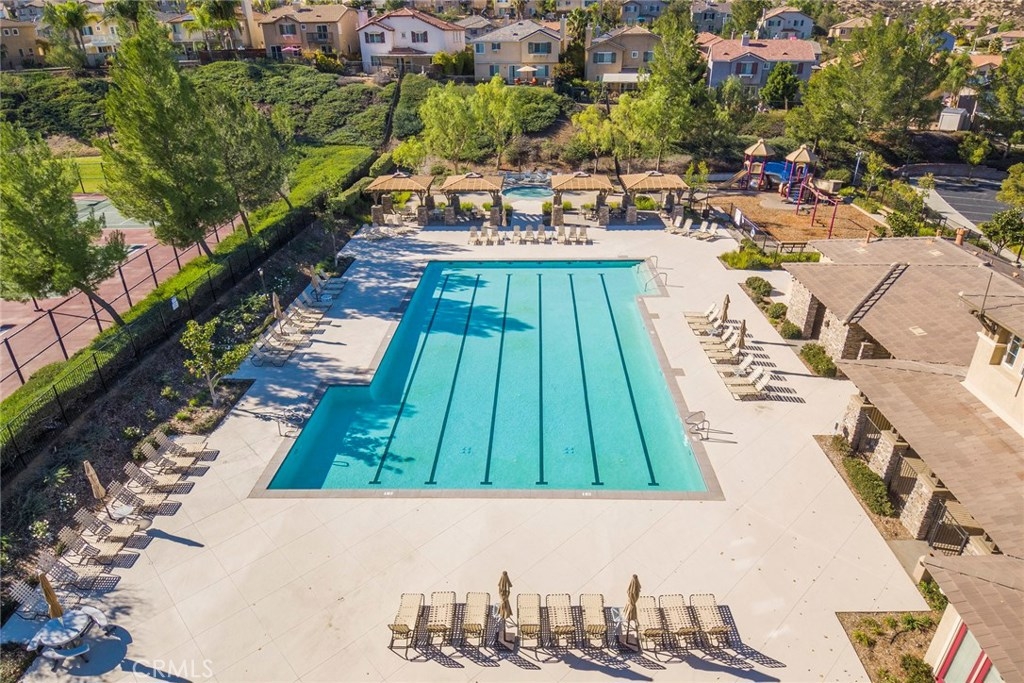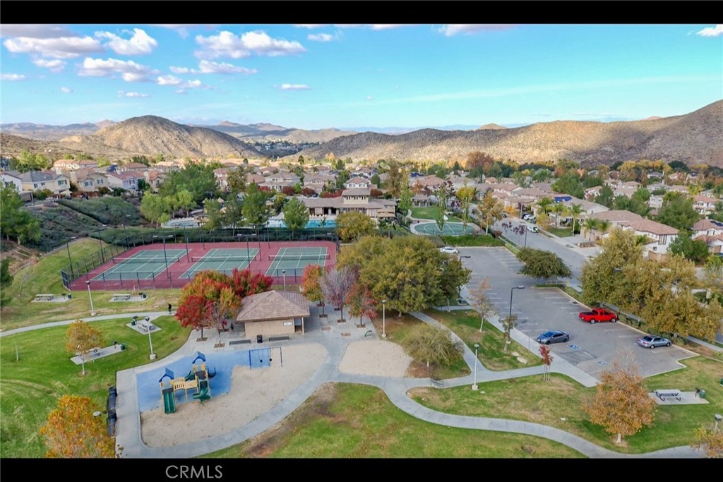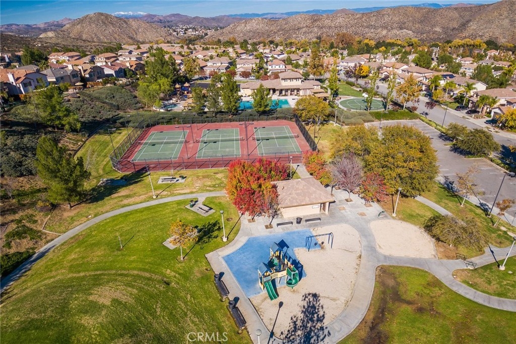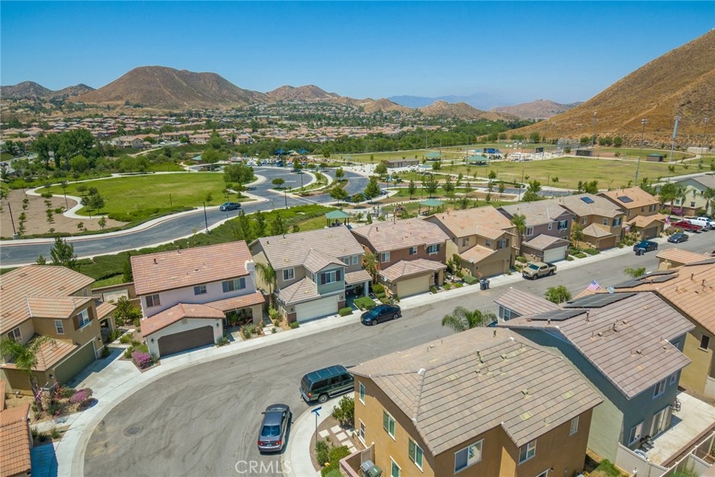 Beautiful and well maintained home in Canyon Hills "Parkside" community. No rear neighbors and open space between neighbors on one side. Walking distance to Lake Elsinore sports park and HOA pool. Home features 4 bedrooms and 3 bathrooms, 1 bedroom and 1 bathroom with shower are located downstairs. Kitchen with island is upgraded with granite countertops and stainless appliances. Tile flooring throughout. Huge upstairs laundry room with storage shelves. Large walk-in closet in master bedroom and another walk-in closet in bedroom #4. Stamped concrete patio and Alumawood patio cover, custom brick planter box with fruit trees along rear fence. 2 car attached garage. Close to dining, shopping, and entertainment. Within 1 hour of San Diego, LA and Orange Counties. Centrally located between the 15 and 215 freeways. Three schools in community, two elementary and one middle school. This is a great home in a great location, call today to schedule a showing.