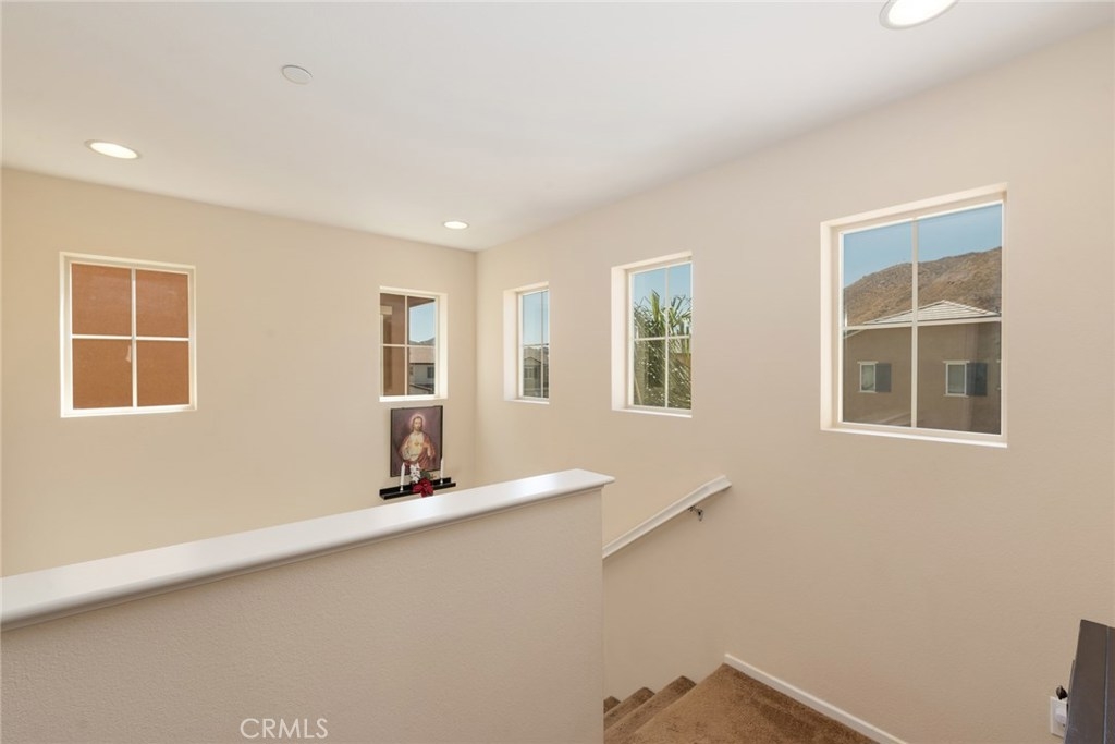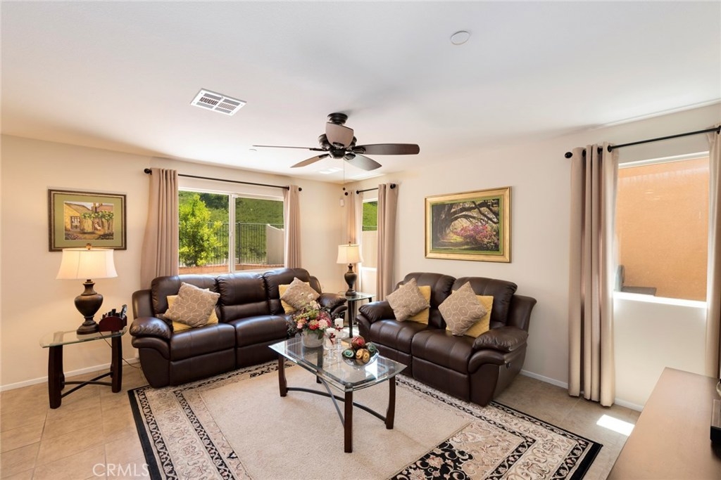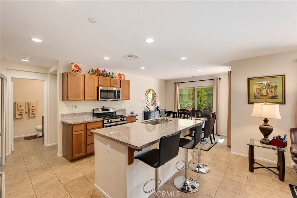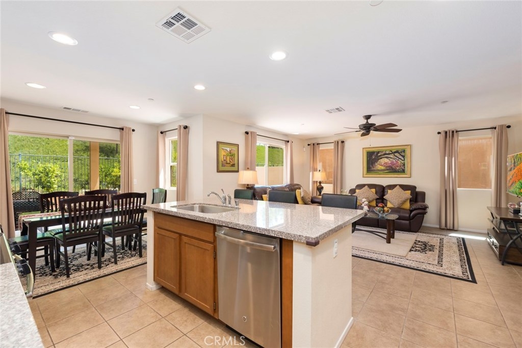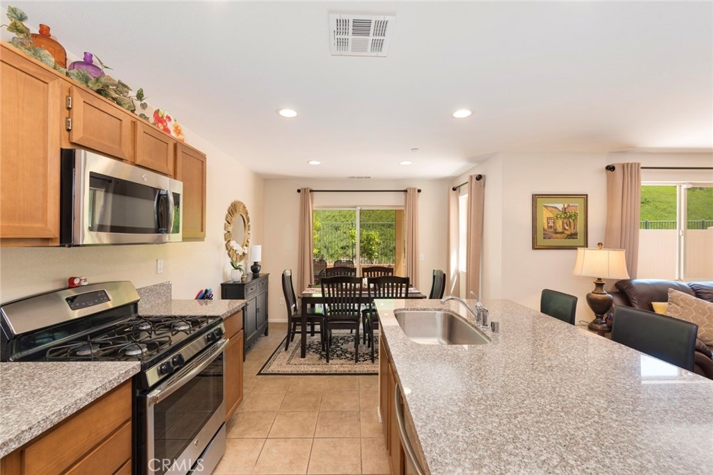 Beautiful and well maintained home in Canyon Hills "Parkside" community. No rear neighbors and open space between neighbors on one side. Walking distance to Lake Elsinore sports park and HOA pool. Home features 4 bedrooms and 3 bathrooms, 1 bedroom and 1 bathroom with shower are located downstairs. Kitchen with island is upgraded with granite countertops and stainless appliances. Tile flooring throughout. Huge upstairs laundry room with storage shelves. Large walk-in closet in master bedroom and another walk-in closet in bedroom #4. Stamped concrete patio and Alumawood patio cover, custom brick planter box with fruit trees along rear fence. 2 car attached garage. Close to dining, shopping, and entertainment. Within 1 hour of San Diego, LA and Orange Counties. Centrally located between the 15 and 215 freeways. Three schools in community, two elementary and one middle school. This is a great home in a great location, call today to schedule a showing.
