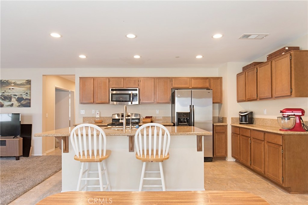 Picture perfect, energy efficient home located in the community of Canyon Hills in Lake Elsinore! This home features 4 bedrooms and 2.5 bathrooms, with one bedroom and half bath downstairs. The kitchen features stainless steel appliances, granite counter tops, abundant kitchen cabinetry, and a large center island. Upstairs you'll find two good sized secondary bedrooms, upstairs laundry room with storage, and the master bedroom suite. There are solar panels to help keep your utility bills lower. Low maintenance backyard, perfect place to soak up some sun! This home is within walking distance to the elementary school and many of the things that the community of Canyon Hills has to offer, including, parks, tennis courts, hiking trails, pools, spas, splash pad, basketball courts, picnic areas, and so much more. California living at it's best!