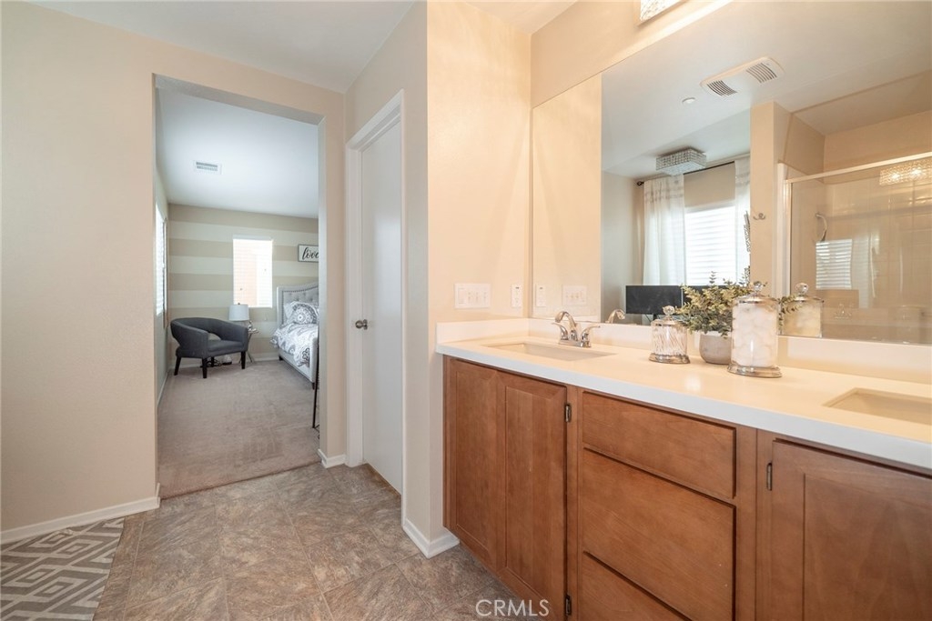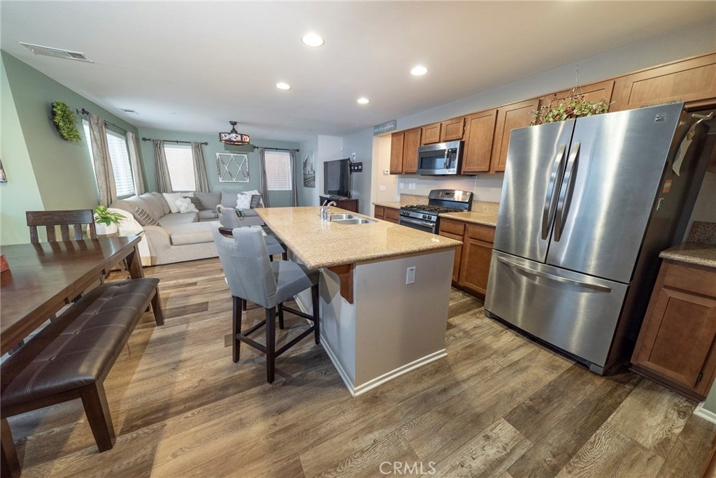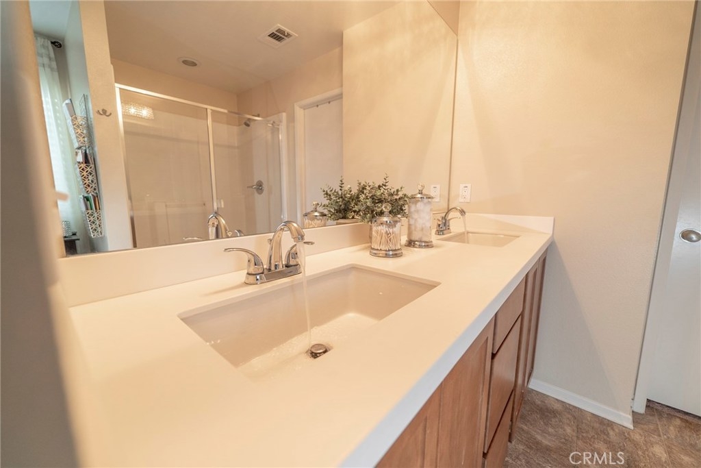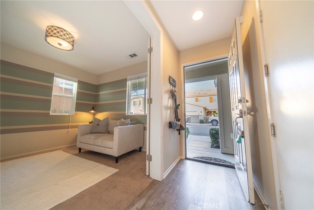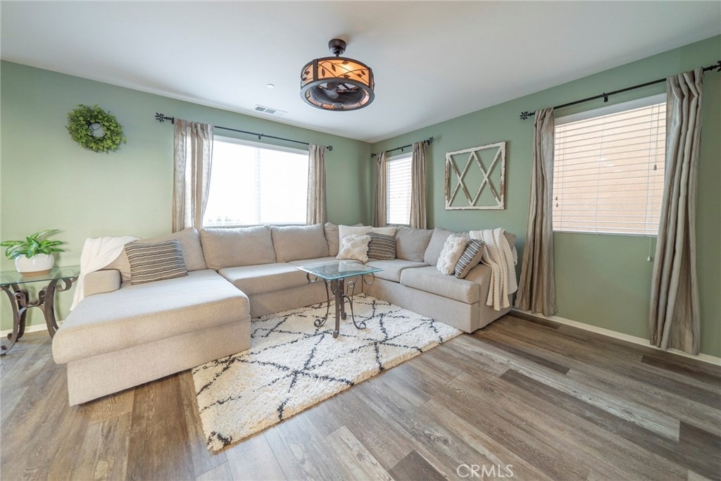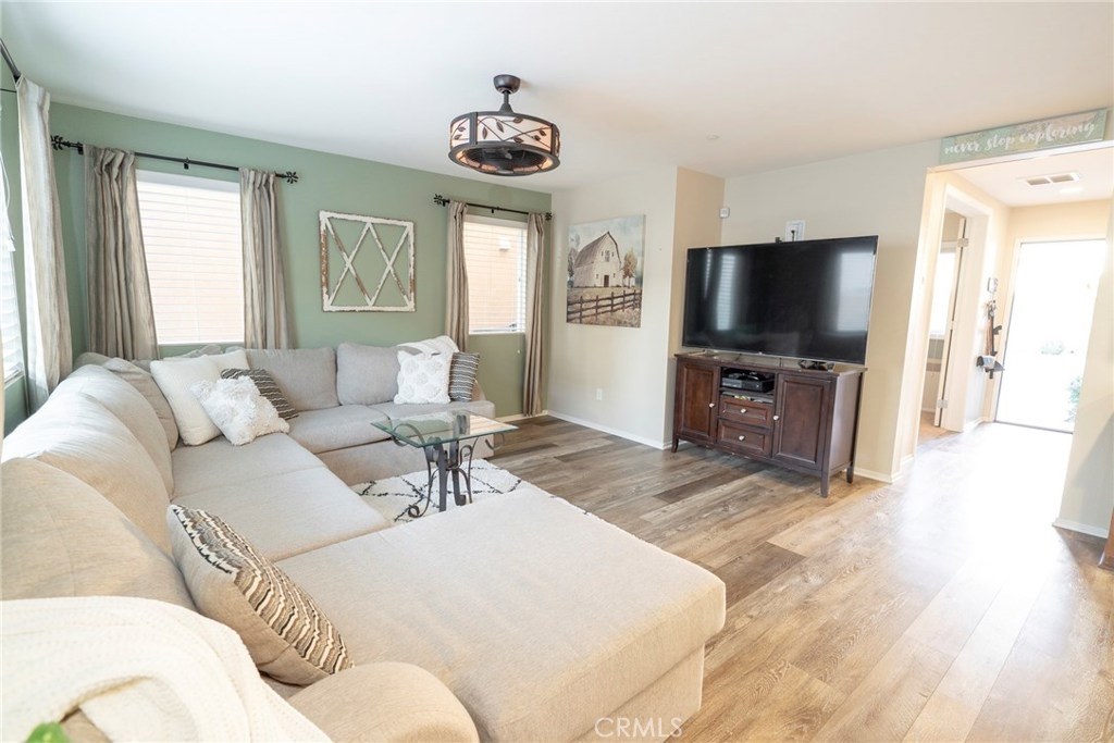 This BEAUTIFUL HOME, located in CANYON HILLS, is LOADED WITH UPGRADES and AMENITIES! Upon entering, you will EXPERIENCE the NEW LAMINATE FLOORING and the SPACIOUS OPEN FLOOR PLAN.The kitchen has PLENTY OF STORAGE and a LARGE GRANTE ISLAND, perfect for entertaining. With PLENTY OF WINDOWS, this home is WELL LIT with BRIGHT NATURAL LIGHT. THE LARGE SLIDING DOOR makes it a breeze to move your entertaining from indoors to your lovely PRIVATE CONCRETE PATIO area outside. Aside from the living area downstairs, you will find the room, currently used as a DEN/ MAN CAVE, can easily be converted to a 4th BEDROOM. Upstairs, you will find ALL THREE BEDROOMS ARE GENEROUSLY SIZED. The MASTER has DOUBLE SINKS, A VANITY AREA and a LARGE WALK IN CLOSET. The LAUNDRY ROOM UPSTAIRS is not only convenient, but is spacious and OFFERS A WONDERFUL AMOUNT OF STORAGE.This home INCLUDES THE WASHER AND DRYER! The Neighborhood and community amenities really help make this home SUCH A GEM as it is within WALKING DISTANCE to your POOL and SPA, PLAYGROUNDS, SPLASH PAD, SPORTS PARKS, PICNIC AREAS, AND EVEN A DOG PARK! YOU REALLY MUST SEE IT to experience the PERFECT LOCATION, right between15 and 215 freeways, CLOSE TO SHOPPING AND SCHOOLS, and of course THE CHARM OF THE LOVELY NEIGHBORHOOD. Don’t miss out. SCHEDULE A SHOWING TODAY!