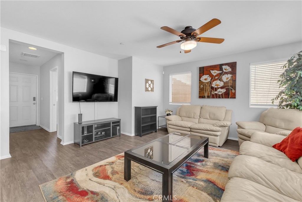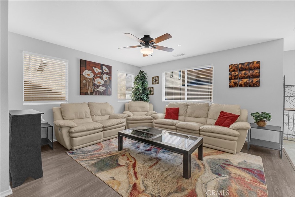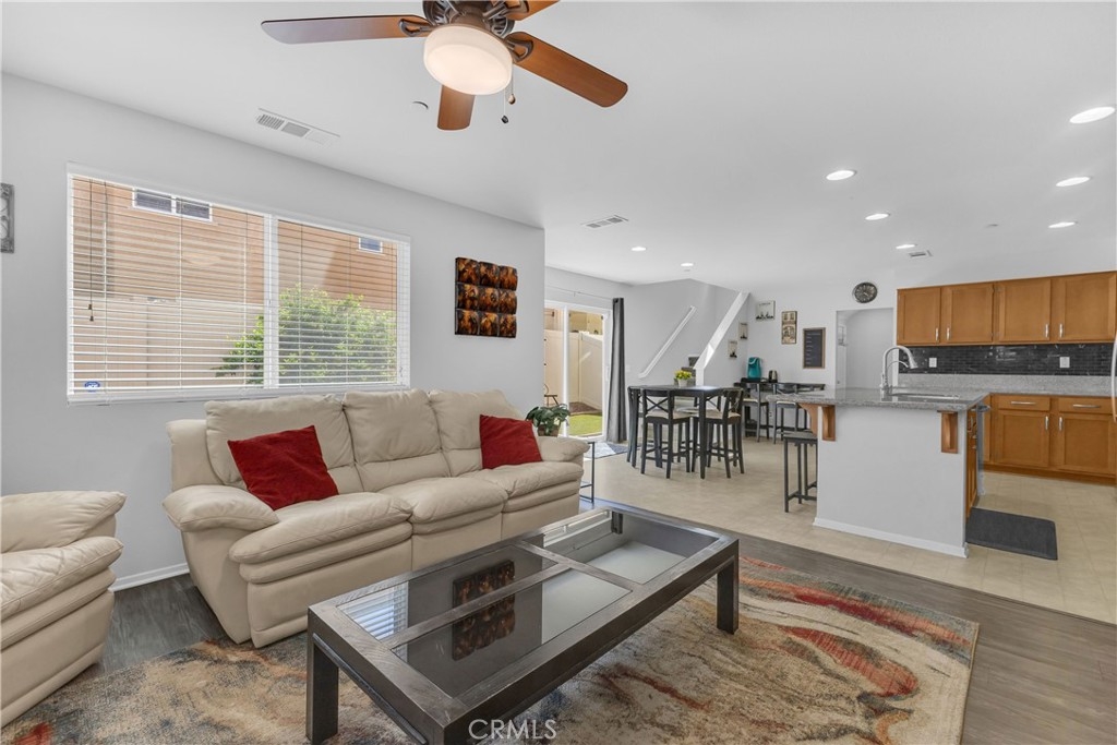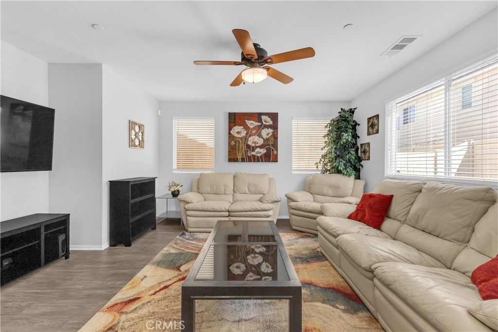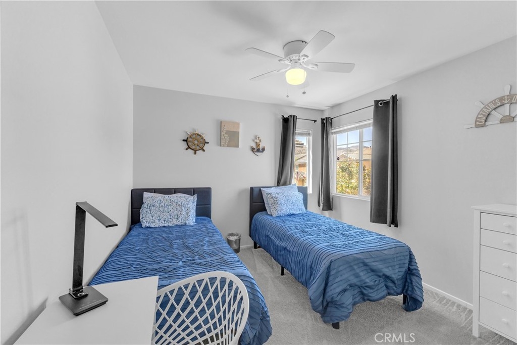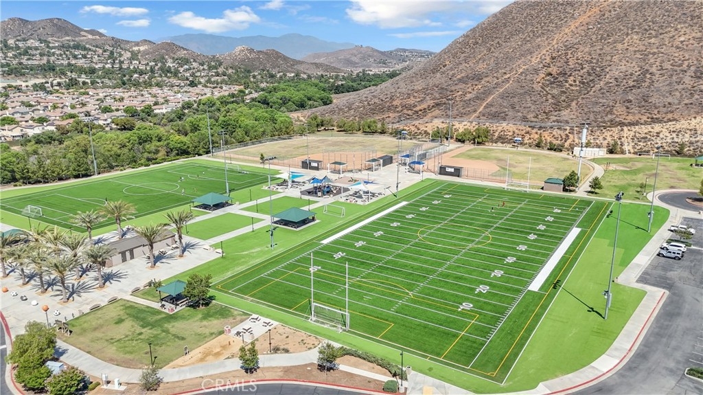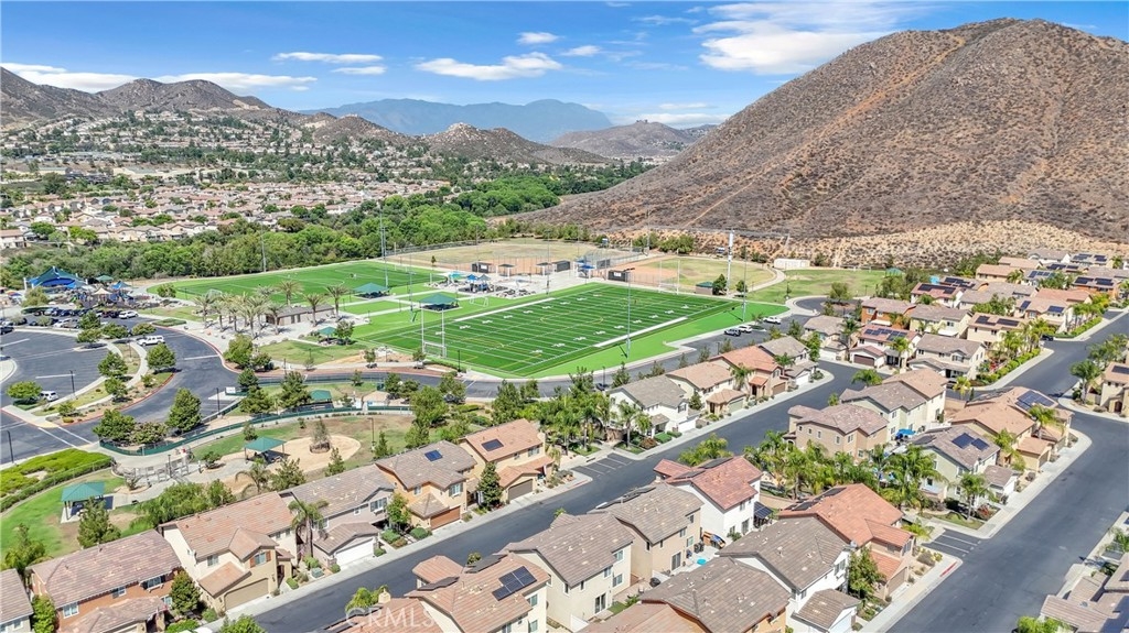 Discover an exceptional lifestyle in this thoughtfully reimagined 4-bedroom, 2.5-bathroom home nestled within the prestigious Canyon Hills master-planned community. Built in 2013 and lovingly customized for modern family living, this residence offers the perfect blend of comfort, community, and convenience. Step into an open-concept living space where natural light creates warmth and connection throughout the well-appointed kitchen featuring stainless steel appliances that flows seamlessly into the family room. The home has been expertly modified with three independent bedrooms upstairs, each enhanced with custom recessed lighting and ceiling fans, while the master suite provides a private retreat. The ground-level flex room has been converted from an open den into a private fourth bedroom, perfect for guests or multi-generational living. Fresh flooring throughout and modern Ring and Nest smart home technology complete the interior upgrades, along with an upstairs laundry room for ultimate convenience. Your private backyard oasis features premium artificial turf and elegant pavers, creating an entertaining space that requires minimal upkeep. Canyon Hills offers resort-quality amenities including three sparkling community pools with BBQ stations, heated spas, splash pad, and full-service clubhouse. The 18-acre Canyon Hills Community Park features dual playgrounds, water park, sports fields, dog park, and Dragon Peak Trail access. Tennis courts at Creekside Park, rose gardens, and vibrant community events create a family-focused environment with friendly neighbors and plenty of children. Educational excellence comes through the highly-rated Lake Elsinore Unified School District, with access to Cottonwood Canyon Elementary, Canyon Lake Middle School, and Herk Bouris Elementary. The prime location offers minutes to major freeways (I-15 and I-215), short drives to Lake Elsinore and Canyon Lake, proximity to shopping centers, and direct park access across the street. This isn't just a house - it's your family's gateway to the Canyon Hills lifestyle, combining thoughtful modifications, premium amenities, excellent schools, and a tight-knit community perfect for creating lasting memories.