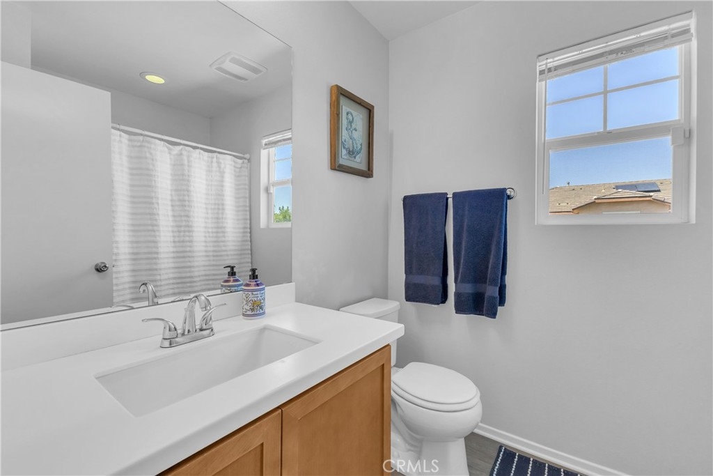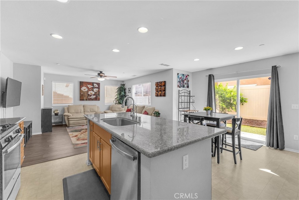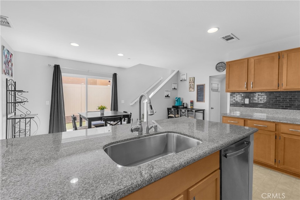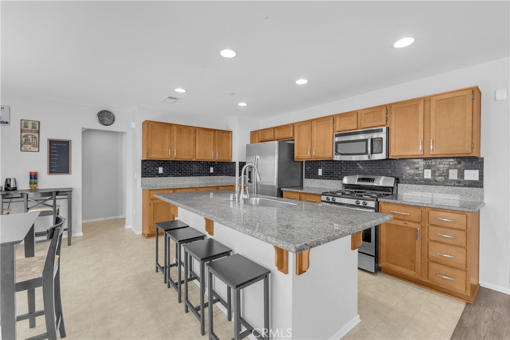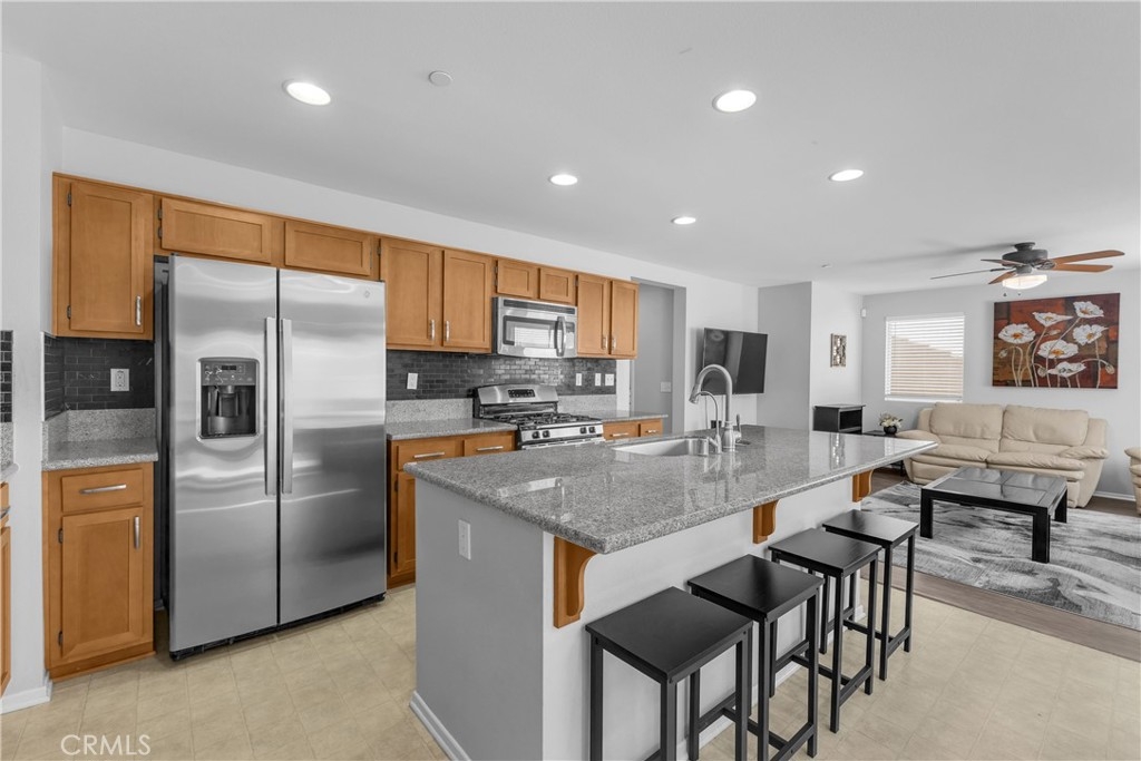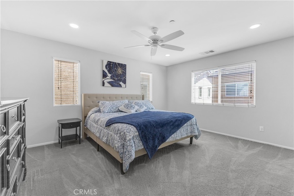 Discover an exceptional lifestyle in this thoughtfully reimagined 4-bedroom, 2.5-bathroom home nestled within the prestigious Canyon Hills master-planned community. Built in 2013 and lovingly customized for modern family living, this residence offers the perfect blend of comfort, community, and convenience. Step into an open-concept living space where natural light creates warmth and connection throughout the well-appointed kitchen featuring stainless steel appliances that flows seamlessly into the family room. The home has been expertly modified with three independent bedrooms upstairs, each enhanced with custom recessed lighting and ceiling fans, while the master suite provides a private retreat. The ground-level flex room has been converted from an open den into a private fourth bedroom, perfect for guests or multi-generational living. Fresh flooring throughout and modern Ring and Nest smart home technology complete the interior upgrades, along with an upstairs laundry room for ultimate convenience. Your private backyard oasis features premium artificial turf and elegant pavers, creating an entertaining space that requires minimal upkeep. Canyon Hills offers resort-quality amenities including three sparkling community pools with BBQ stations, heated spas, splash pad, and full-service clubhouse. The 18-acre Canyon Hills Community Park features dual playgrounds, water park, sports fields, dog park, and Dragon Peak Trail access. Tennis courts at Creekside Park, rose gardens, and vibrant community events create a family-focused environment with friendly neighbors and plenty of children. Educational excellence comes through the highly-rated Lake Elsinore Unified School District, with access to Cottonwood Canyon Elementary, Canyon Lake Middle School, and Herk Bouris Elementary. The prime location offers minutes to major freeways (I-15 and I-215), short drives to Lake Elsinore and Canyon Lake, proximity to shopping centers, and direct park access across the street. This isn't just a house - it's your family's gateway to the Canyon Hills lifestyle, combining thoughtful modifications, premium amenities, excellent schools, and a tight-knit community perfect for creating lasting memories.