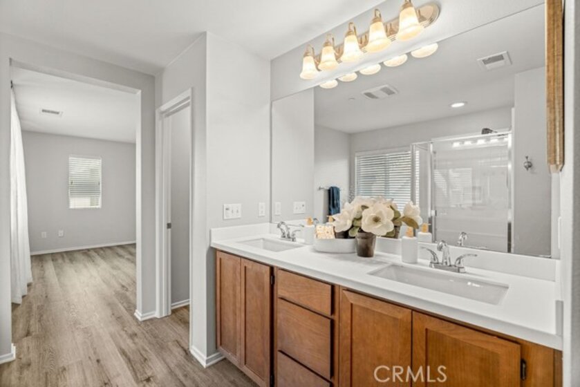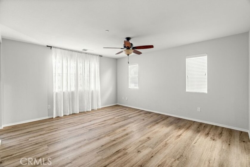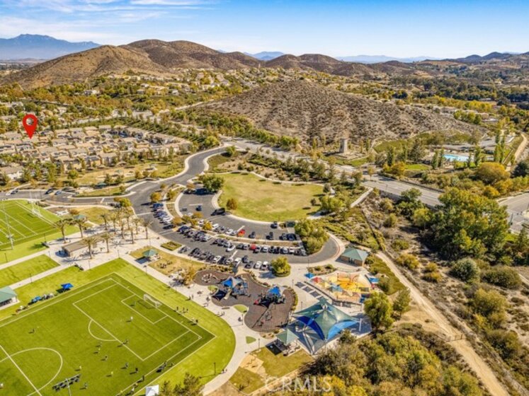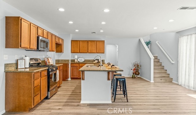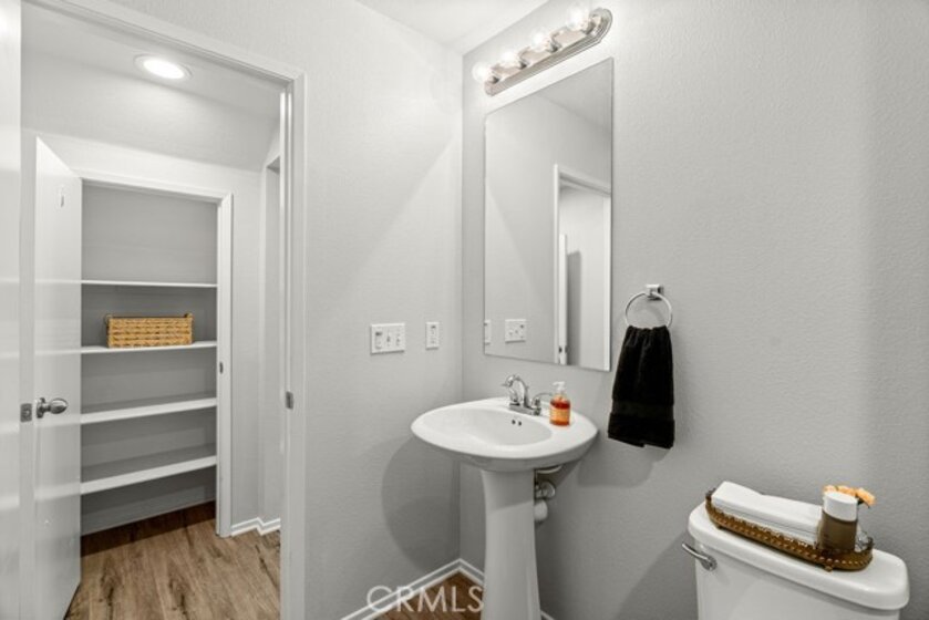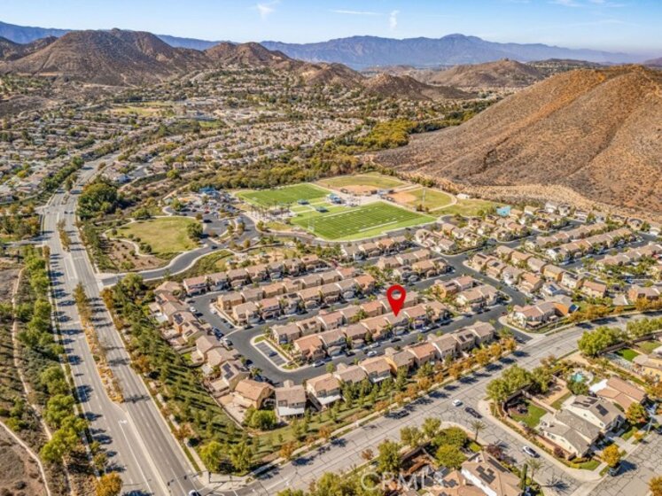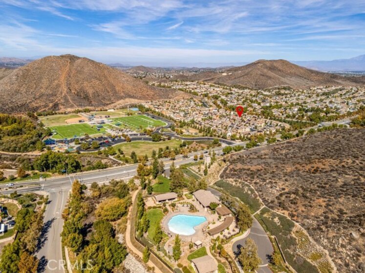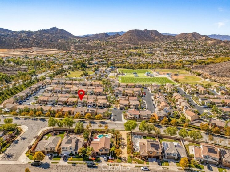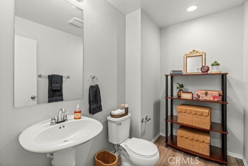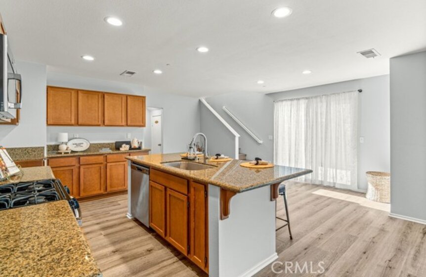 Nestled in the vibrant Canyon Hills neighborhood - presenting 34169 Carissa Dr, a beautifully maintained 3 bedroom, PLUS a downstairs multi-purpose room w/closet, 2.5 bath residence offering a stylish well-appointed floor plan. The open-concept layout is filled with natural light and provides a welcoming atmosphere for daily living or entertaining guests. Beautiful water & scratch proof laminate wood floors have been newly installed throughout the 1st and 2nd floors creating a cohesive modern style. The bright and open kitchen features maple cabinetry, granite counters, a large center island accommodating 4+ bar seating with inset stainless steel farm sink; stainless-steel free-standing stove, microwave, built-in duo trash bins, and a separate pantry. Ideally located on the 1st floor is a multi-purpose room to use as a downstairs bedroom, home office, or family/den space. There is also a 1/2 bath located downstairs. Upstairs are 3 bedrooms. The spacious primary en-suite features dual sinks, tub, walk-in shower & a large walk-in wardrobe. Two add'l bedrooms share a full bath with tub/shower combo. All bedrooms have ceiling fans and ample window exposure. Conveniently located on the 2nd floor is the laundry room. The patio features concrete patio, tropical landscaping, and artificial turf creating a very low-maintenance yard, perfect for families seeking style and convenience. Enjoy a family-friendly setting with access to clubhouse, 3 pools, multiple playgrounds, sports fields, dog parks, walking trails, and a splash pad—ideal for outdoor enthusiasts who appreciate active amenities. With tree-lined streets and top-rated local schools nearby, this home combines comfort, community, and outstanding value and is centrally located between the 15 and 215 freeways for your easy commute. Schedule your private showing to discover what makes this Lake Elsinore gem truly special.