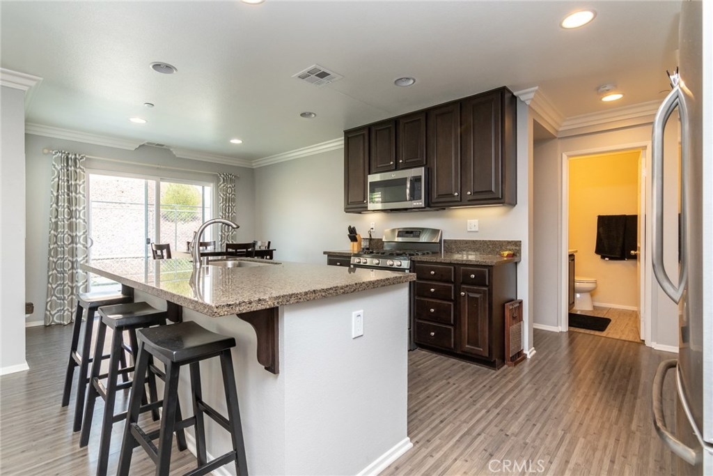 Just Reduced!!!Stunning 4 bedroom 3 bathroom Canyon Hills residence. This home features beautiful hardwood floors a full bedroom and bathroom downstairs and an open kitchen with beautiful granite countertops that is built for entertaining. The large master bedroom and master bathroom is located upstairs with the additional two bedrooms and one bathroom. Outside is a large landscapes backyard that can accommodate any size group for a fun summer gathering. This home has been meticulously cared for and is truly turn key move in ready.