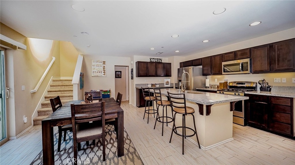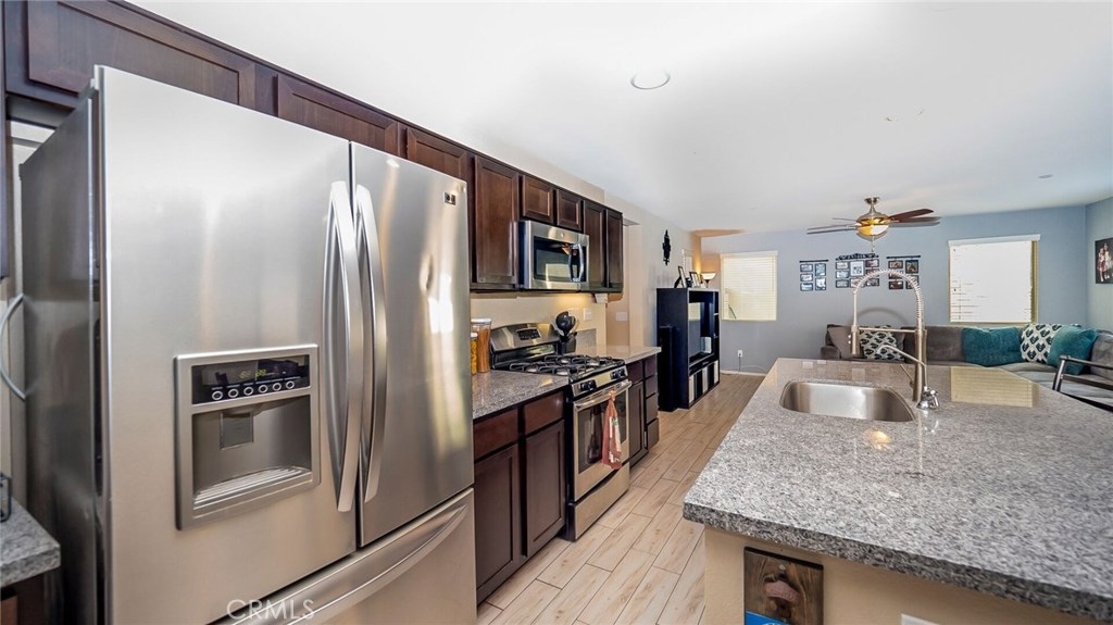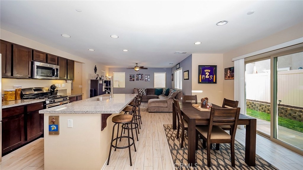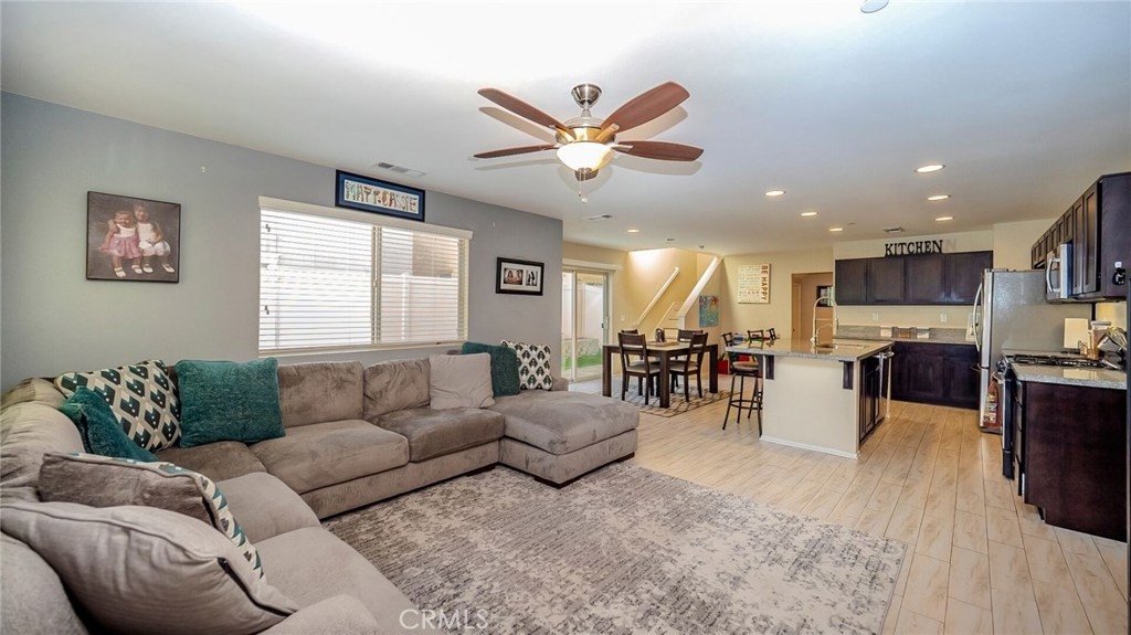 Best deal in town!! This gorgeous home is situated in the elite Canyon Hills Community and has everything on your wish list and more!! It features a spacious open contemporary floor plan with upgraded floors, tastefully painted living area, a modern kitchen with granite countertops and fully loaded with stainless steel appliances that are INCLUDED!! (Stove, microwave and refrigerator) and a large center Island that overlooks the family room. Perfect for entertaining! And has an upstairs laundry room(BONUS!! WASHER AND DRYER INCLUDED!) The guest bathroom downstairs is oversized as well. All three bedrooms are upstairs including the master suite which has double sinks, separate shower and a walk-in closet. Relax in the roomy backyard, it is low maintenance with drought tolerant landscape and has a concrete patio, grass area and vinyl fencing. Or sip on some coffee and relax on the charming front porch. The choice is yours! The fabulous master planned community of Canyon Hills offers many amenities including multiple community pools/spas, splash pad, a BBQ area, parks, basketball courts, tennis courts, a clubhouse, and lots of hiking trails AND Front yard maintained by HOA, SAVING TIME AND EFFORT!!! It’s conveniently close to both the 15 and 215 freeways, making this home commuter friendly! This home is close to schools, shopping, and walking distance to parks! Truly a must-see home! Community is approved for FHA and VA loans! Don't wait! Schedule a showing today!
