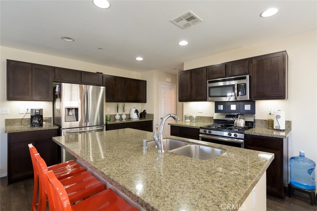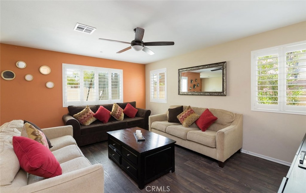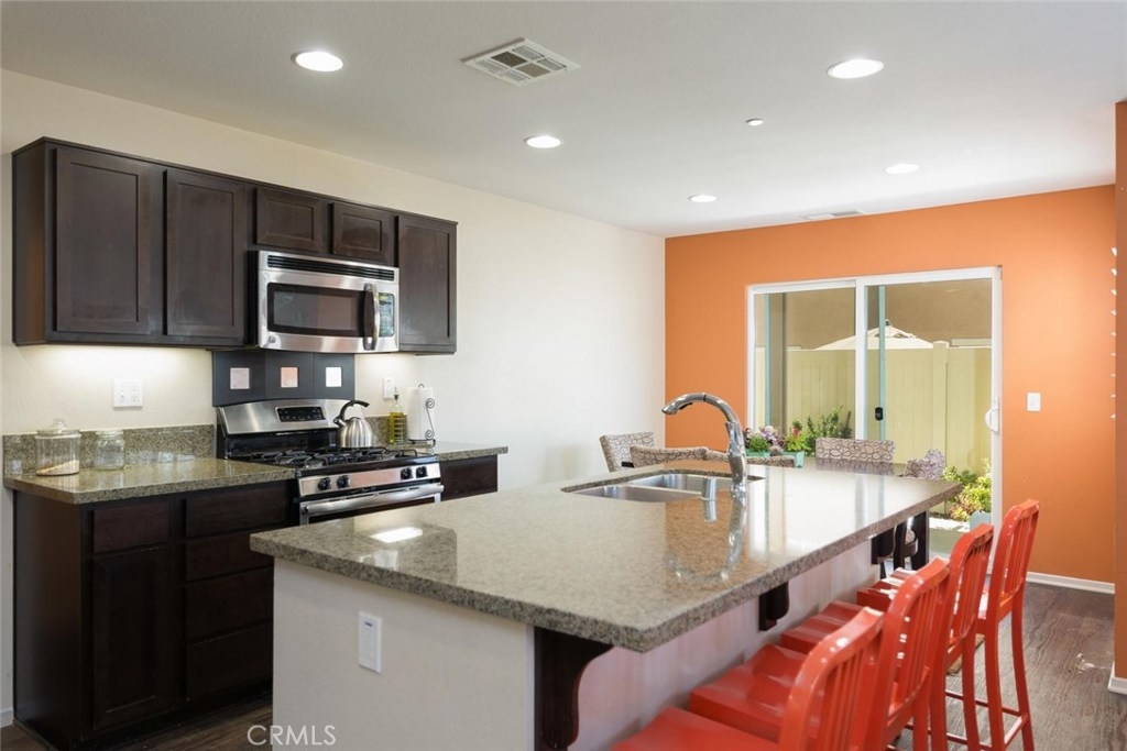 Truly a gorgeous home located in the community of Canyon Hills in Lake Elsinore! This home boasts 4 bedrooms and 3 bathrooms, w/ one bedroom and full bathroom downstairs. Upgraded wood flooring throughout the downstairs, plantation shutters throughout, and a great open floor plan! The kitchen comes equipped with stainless steel appliances, granite counter tops, upgraded dark chocolate kitchen cabinetry, and a large island. Upstairs you'll find two good sized guest rooms, one has a walk-in closet, the large laundry room with tons of storage, and the master bedroom w/ master bathroom. The backyard is very inviting, equipped with an alumawood patio cover, fully landscaped with drought tolerant plants and plenty of space for the kids to play! This home is within walking distance to the elementary school and many of the things that the community of Canyon Hills has to offer, including, parks, recreation areas, hiking trails, pools, spas, splash pad, basketball courts, tennis courts, picnic areas, and much more for your enjoyment. Once you enter this property, you'll know you're at home! Call today and setup your showing appointment before this beautiful home is gone!
