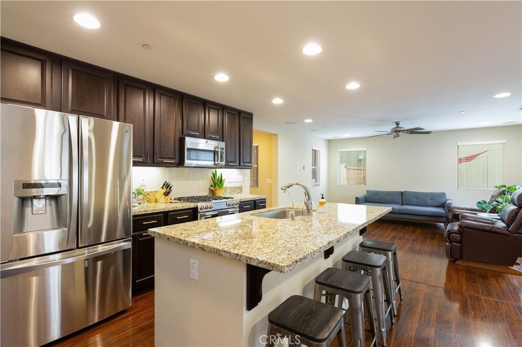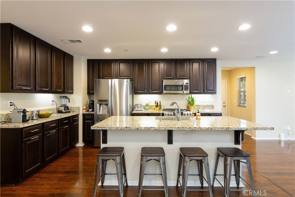 Truly a gorgeous home located in the community of Canyon Hills in Lake Elsinore! This home boasts 3 bedrooms and 2.5 bathrooms, upgraded wood laminate flooring throughout the downstairs, built in surround sound in the family room, and a great open floor plan! The kitchen comes equipped with upgraded stainless steel appliances, granite counter tops, upgraded dark kitchen cabinetry w/ brushed nickel hardware, and a large island. This home is within walking distance to the elementary school and many of the things that the community of Canyon Hills has to offer, including, parks, recreation areas, hiking trails, pools, spas, splash pad, basketball courts, tennis courts, picnic areas, and much more for your enjoyment.
