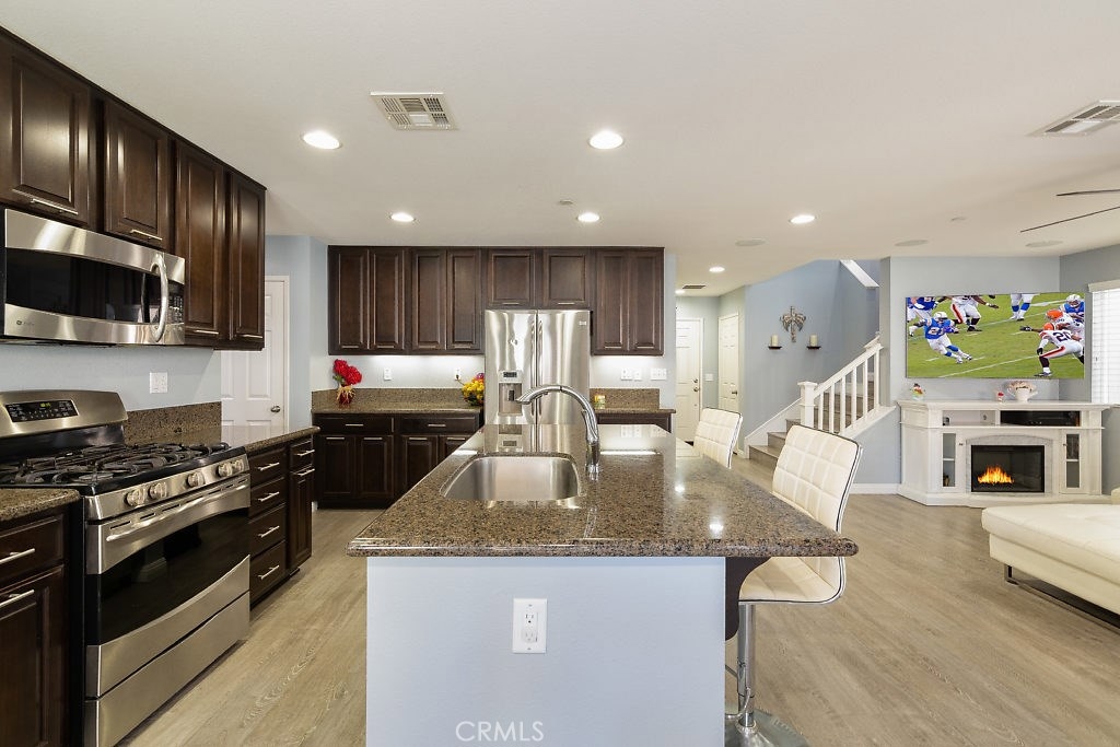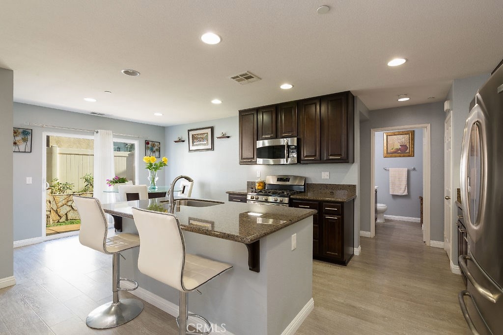 Location! Location! Tucked away in the pleasant Parkside Community located in the beautifully planned development of Canyon hills. This cute 4 bedroom, 3 bathroom home has an open layout great for entertainment and stunning grey laminate flooring. The living room opens to the kitchen that has beautiful granite countertops, stainless steel appliances, dark wood cabinets with plenty of storage and a large island. Outside you have the perfect spot to relax with a stamped concrete patio and BBQ island. On the main level you also have a spacious main floor bedroom and bathroom great for family or guests. Make your way upstairs you will find 2 bedrooms, oversized laundry room and the Master Suite. Walk into the master bath you have a spacious double vanity walk-in shower and soaking tub with a spacious walk in closet. Walking distance to Canyon Hills Sports Park, Splash Park, 3 Community pools, Cottonwood Canyon Elementary and Canyon Lake Jr High schools. Give us a call today to take a look.