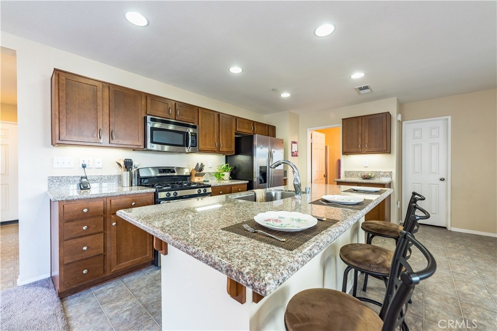 STUNNING TURN KEY HOME IN CANYON HILLS!!! This home has 4 spacious bedrooms with one bedroom and full bath down stairs, perfect for an office or in-law quarters!!!! The kitchen is upgraded with granet counter tops, large farmhouse sink, and stainless steel appliances. BONUS ALERT!!! REFRIGERATOR IS INCLUDED!!Upstairs you'll find a LARGE laundry room, 3 spacious bedrooms, and 2 complete bathrooms. The master bath has his/her sinks and extends into a large walking closet. The charming backyard is completed with pavers and planting areas. This home is walking distance to the OUTSTANDING Lake Elsinore sports park that features: splash pad, baseball field, basket ball court, 2 play grounds, soccer fields, and dog park. The HOA includes 3 large pool/spa and entertaining areas. Centrally located between the 15 and 215 freeway. Close to shopping and highly rated schools. Do not miss this opportunity to purchase a completed TURN KEY home!