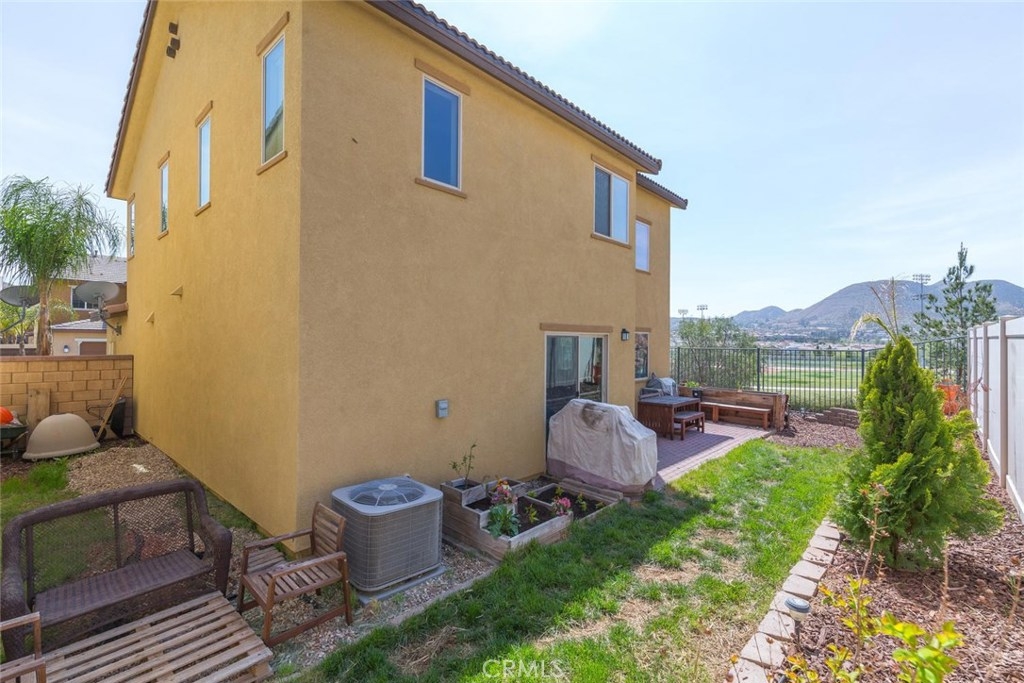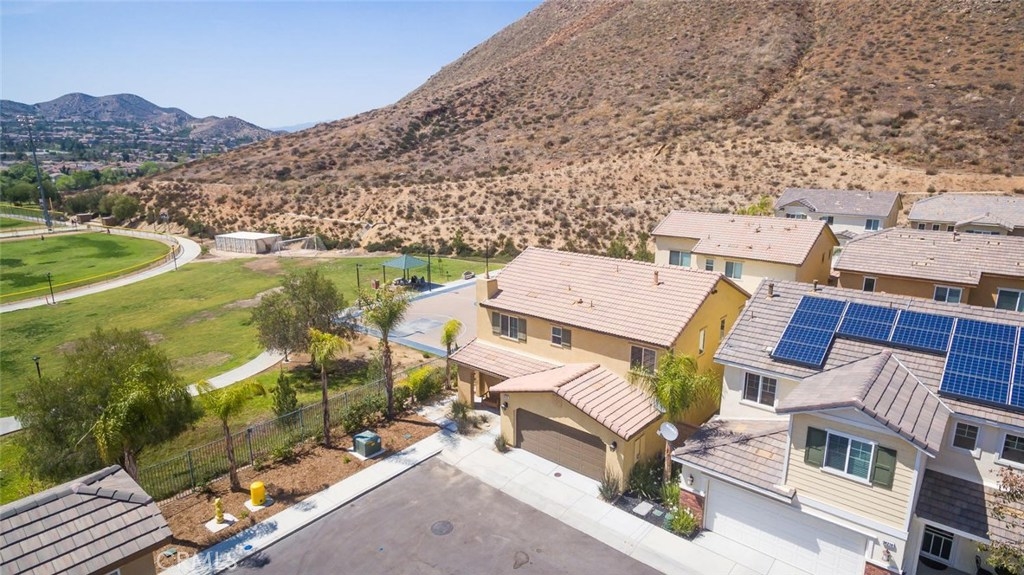 A truly gorgeous home located in the highly desirable neighborhood of Canyon Hills with excellent nearby schools! This beautiful house features bright and airy living room with central heat & air, upgraded epoxy flooring, granite counter tops, stainless steel appliances, entry level den that can be used as a 4th bedroom, upstairs laundry room, and a low maintenance backyard overlooking the Sport Park and mountains. Community amenities include: multiple pools, spa, patio seating, outdoor fireplace, children playground with a splash pad for the hot summer months, BBQ area, tennis courts, and is only steps away from the 18 acre sports park. Short drive to Lake Elsinore, Canyon Lake, I-15 and I-215 freeway and shopping centers.
