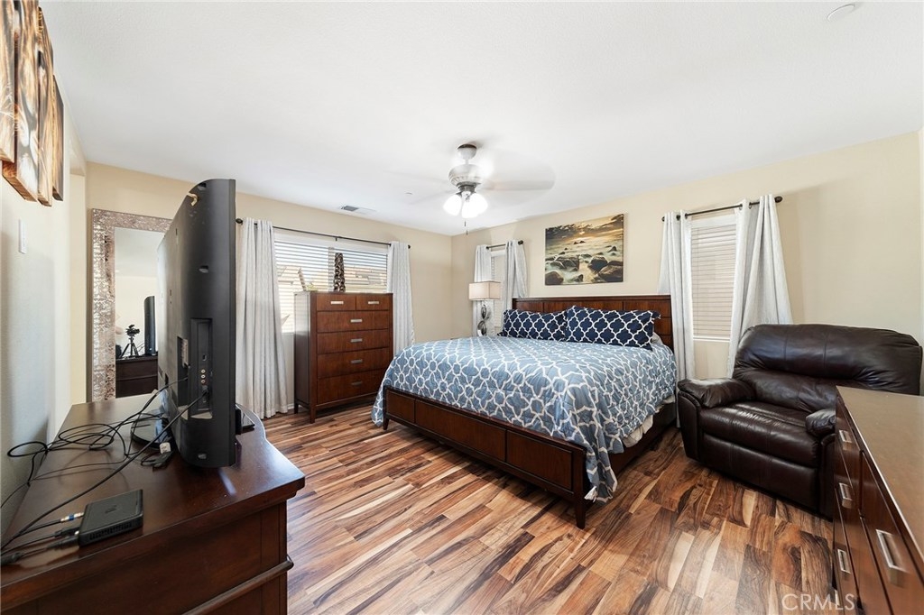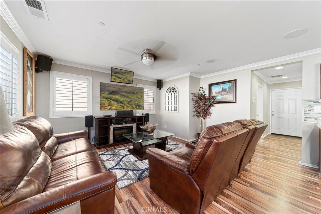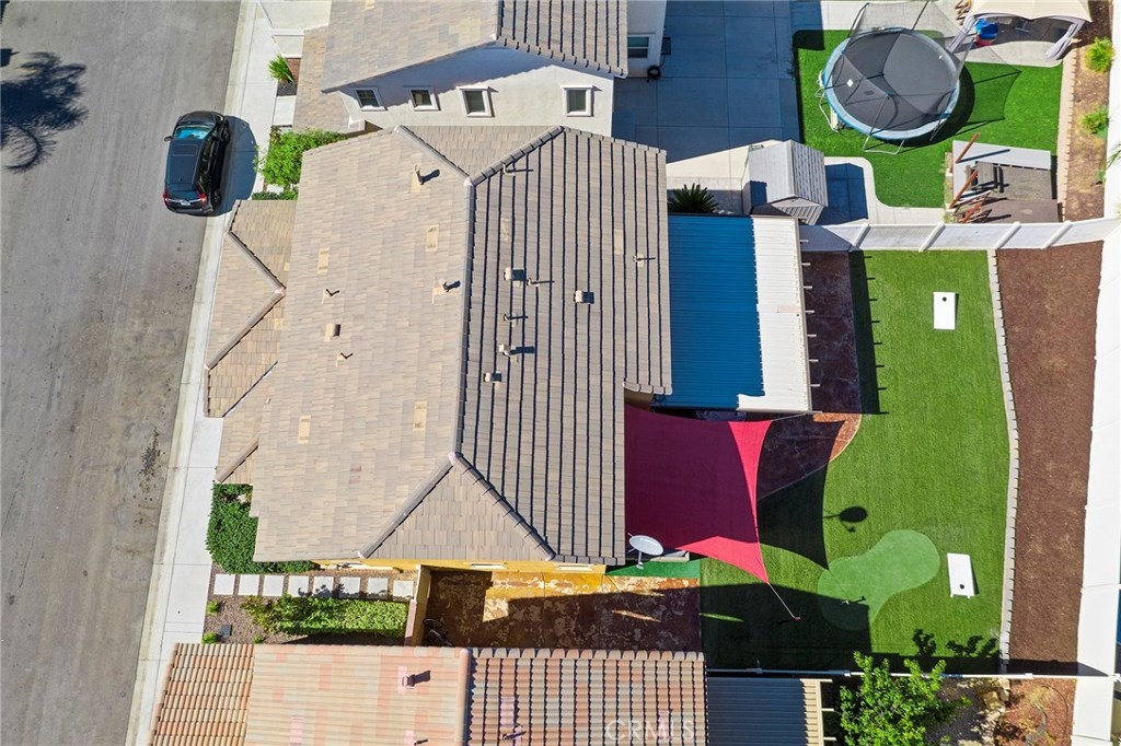 This home is an UPGRADED 4B/2.5BA, w/2-car garage centrally located between Los Angeles & San Diego in the beautiful Canyon Hills Community. Exterior garage door & shutters were just painted in July. Interior downstairs just painted in the last few weeks. Crown molding throughout the downstairs. It features a great room designed for entertaining w/upgraded 9.1 channel surround sound, & ceiling fan. The kitchen has upgraded granite counter tops, an upgraded backsplash, stainless steel appliances, an upgraded faucet, under cabinet lighting, & a freestanding bar. The downstairs main areas feature shutters. There is upgraded flooring throughout. Security system & Ring doorbell. This home features 1B/1BA downstairs w/the master bedroom & 2 bedrooms upstairs. The master features a large walk-in closet & the bathroom has an upgraded shower w/bench. There are upgraded toilets in all bathrooms. All bedrooms have ceiling fans except the bedroom downstairs. There is 220 wiring installed to the backyard for a spa. The backyard has a large 15ft patio cover w/misters, ceiling fan & sun shade sail. There is artificial turf and putting green. The HOA maintains all front yards in the neighborhood & street sweeping. There are 3 pools, 3 parks, hiking trails, dog parks, a sports park, & club house. It is close to everything from, shopping, a fire department, hospitals, a gym, sky diving, lakes, & wine country. Don’t miss it!