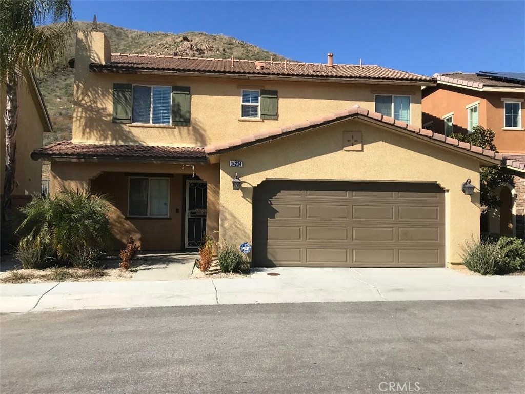 Welcome to this home in Canyon Hills community. Enjoy this 4 bedrooms, 3 full bathrooms (one bedroom and one full bath with shower downstairs). Very low maintenance, the HOA takes care of your entire front yard, no watering needed, no trimming, no cleaning needed both front & back yard. Back yard has easy turf and concrete. The garage has brand new closets professionally installed adding extra storage. When you enter the home you, your downstairs bedroom is to your left. Carpet is in all rooms and tile is is Kitchen and family room area. Upstairs has three bedrooms. Master bedroom room has his and her sinks, shower & walk in closet. The laundry room is conveniently upstairs with extra built-in storage. All bedrooms have ceiling fans. Canyon hills has easy access to both 215 and 15 freeways. Minutes from Menifee shopping center. Excellent schools located in the community including 3 pools, sports park, Splash pad, hills, hiking trails and shopping. Home is ready for a new family to just and enjoy all this home offers without the worry of having to put in maintenance time. Come enjoy Resort style Living!