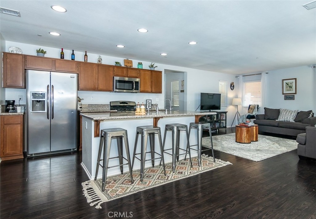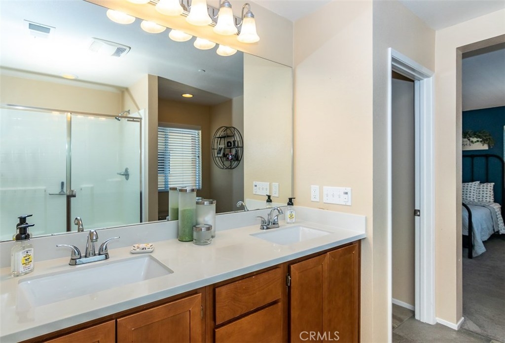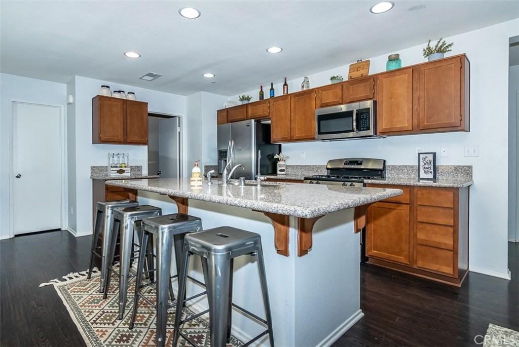 Stunning home in the elite Canyon Hills Community!!This 3 bedroom 2.5 bath upgraded home has everything on your wish list and more!! Beautiful floors, granite countertops, stainless steel appliances, epoxy garage floors, upstairs laundry room! The list is endless! Downstairs is a open kitchen complete with stainless steel appliances and plenty of granite countertops that overlooks the family room. Great for entertaining! The guest bathroom downstairs is oversized as well. All three bedrooms are upstairs including the master suite which has double sinks, separate shower and garden tub, and a walk-in closet. Relax in the roomy backyard with drought tolerant landscape or on the charming front porch. The choice is yours!! The fabulous master planned community of Canyon Hills offers many amenities including multiple community pools, splash pad, a BBQ area, parks, basketball courts, tennis courts, a clubhouse, and lots of trails! Conveniently close to both the 15 and 215 freeways, this home is close to schools, shopping, and parks! Truly a must-see home! Community is approved for FHA and VA loans! Don't wait! Schedule a showing today!