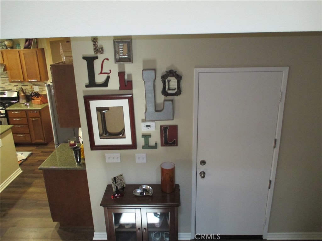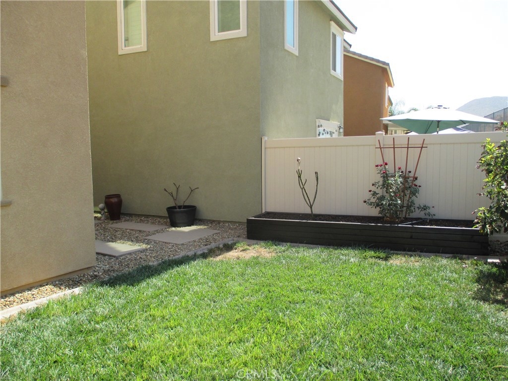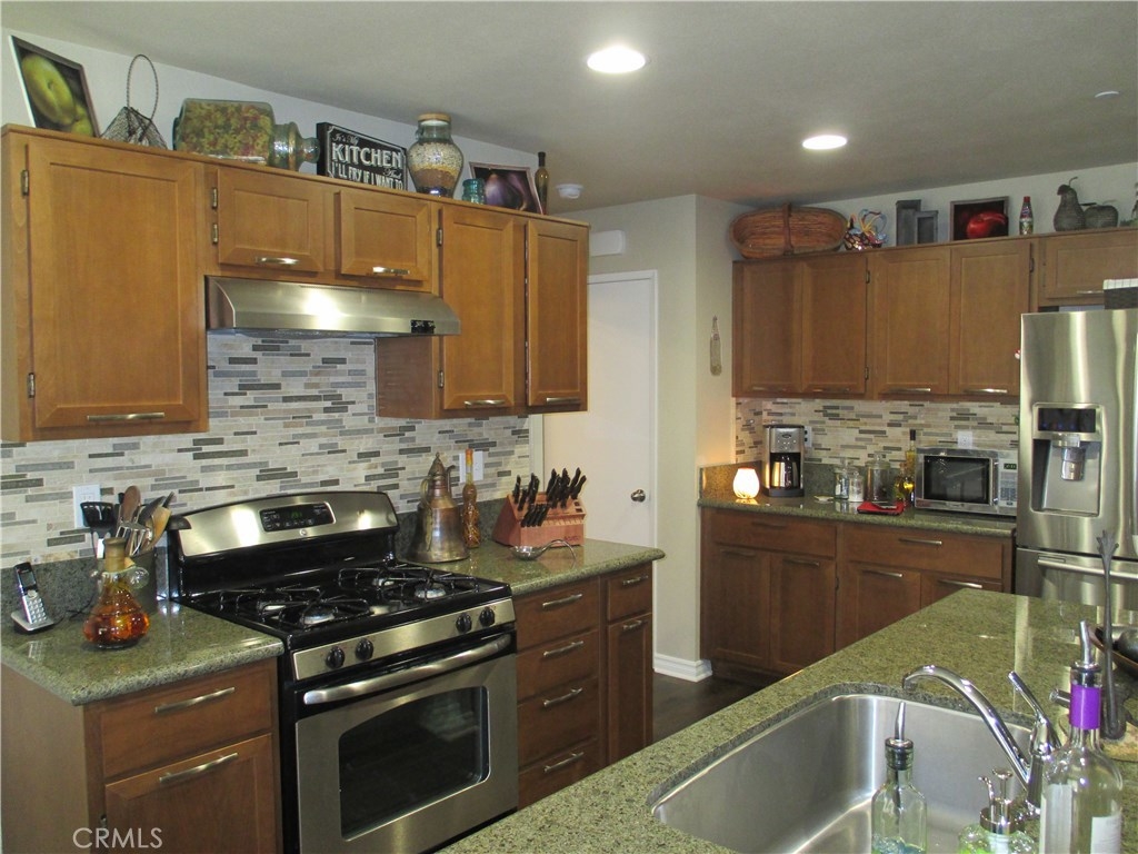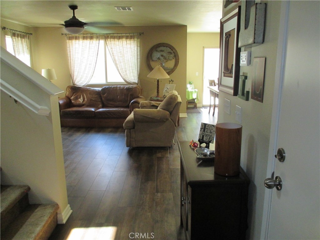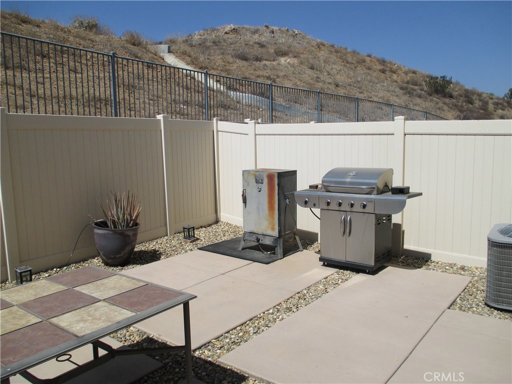 Beautiful turnkey, super clean Canyon Hills family home. 4 bedrooms currently being used as 3 bedroom & 3 baths with a full bedroom & bath downstairs. Great open floor plan with a kitchen that opens to the living room. Upgraded kitchen cabinets with upgraded hardware, granite counters, upgraded stone & tile back splash, stainless appliances & a center island breakfast bar & country style sink. Neutral custom paint, 4 inch baseboard. Lifetime wide planked wood laminate flooring throughout the downstairs. Upgraded electrical with a couple USB ports. All windows are tinted to keep the home cool. Large master bedroom, walk in closet & a large master bath with dual sinks, separate tub and shower. Great hill views from the upstairs master and downstairs. Bathroom 2 upstairs has beautiful custom paint and design. Bedroom 2 also has a walk in closet. Upstairs laundry. Custom backyard with large concrete stepping stones. Nice grass area & vinyl fencing all around. No neighbors behind you for that extra privacy. 2 car garage with white storage cabinets. Association features 3 pools, clubhouse & night time security. Close to schools, shopping & freeway access. This property is priced to sell!
