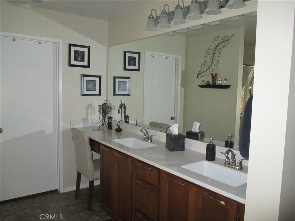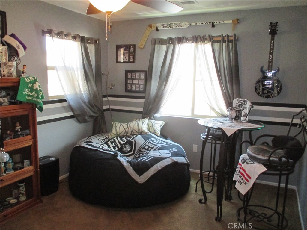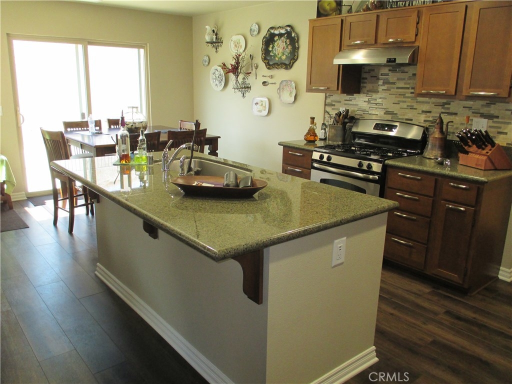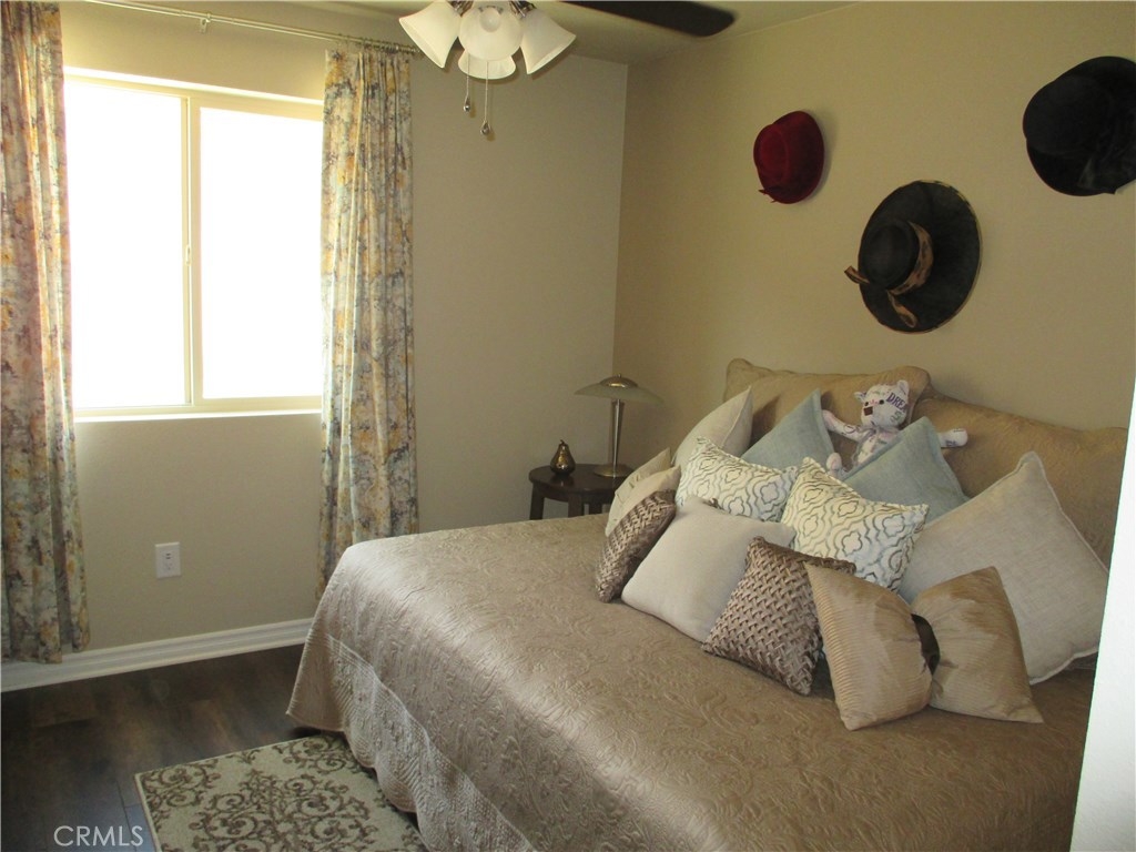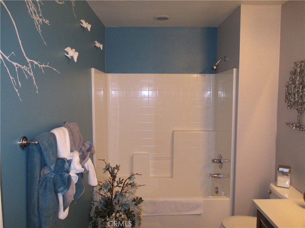Beautiful turnkey, super clean Canyon Hills family home. 4 bedrooms currently being used as 3 bedroom & 3 baths with a full bedroom & bath downstairs. Great open floor plan with a kitchen that opens to the living room. Upgraded kitchen cabinets with upgraded hardware, granite counters, upgraded stone & tile back splash, stainless appliances & a center island breakfast bar & country style sink. Neutral custom paint, 4 inch baseboard. Lifetime wide planked wood laminate flooring throughout the downstairs. Upgraded electrical with a couple USB ports. All windows are tinted to keep the home cool. Large master bedroom, walk in closet & a large master bath with dual sinks, separate tub and shower. Great hill views from the upstairs master and downstairs. Bathroom 2 upstairs has beautiful custom paint and design. Bedroom 2 also has a walk in closet. Upstairs laundry. Custom backyard with large concrete stepping stones. Nice grass area & vinyl fencing all around. No neighbors behind you for that extra privacy. 2 car garage with white storage cabinets. Association features 3 pools, clubhouse & night time security. Close to schools, shopping & freeway access. This property is priced to sell!