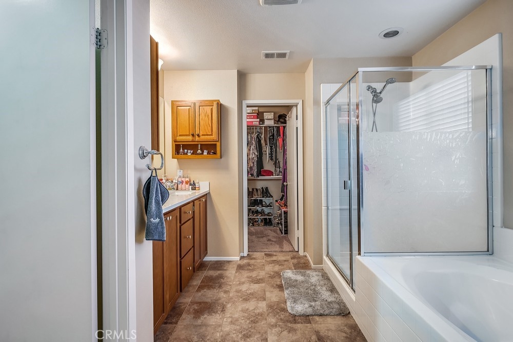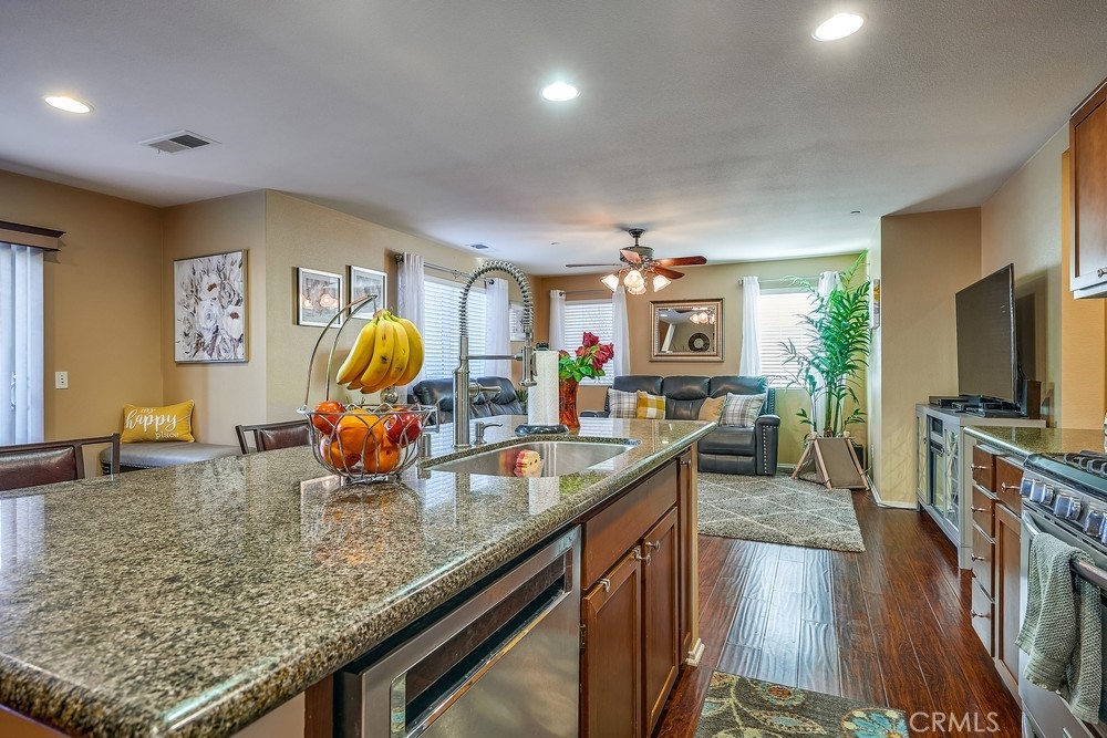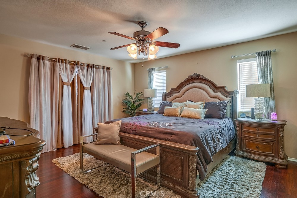 This spacious 4 Bedrooms and 3 bathrooms home in Canyon hills community has one bedroom downstair and three upstairs. First floor bathroom is plumbed for the full bathroom.close to parks and schools and only a quick drive to shopping and restaurants, alos close to 15 and 215 fwys. Backyard is nice size and easy to maintain. All bedrooms and living room has laminate flooring, granite counter tops in the kitchen with beautiful backsplash. Owner just have installed new mental on the masterberoom fireplace.