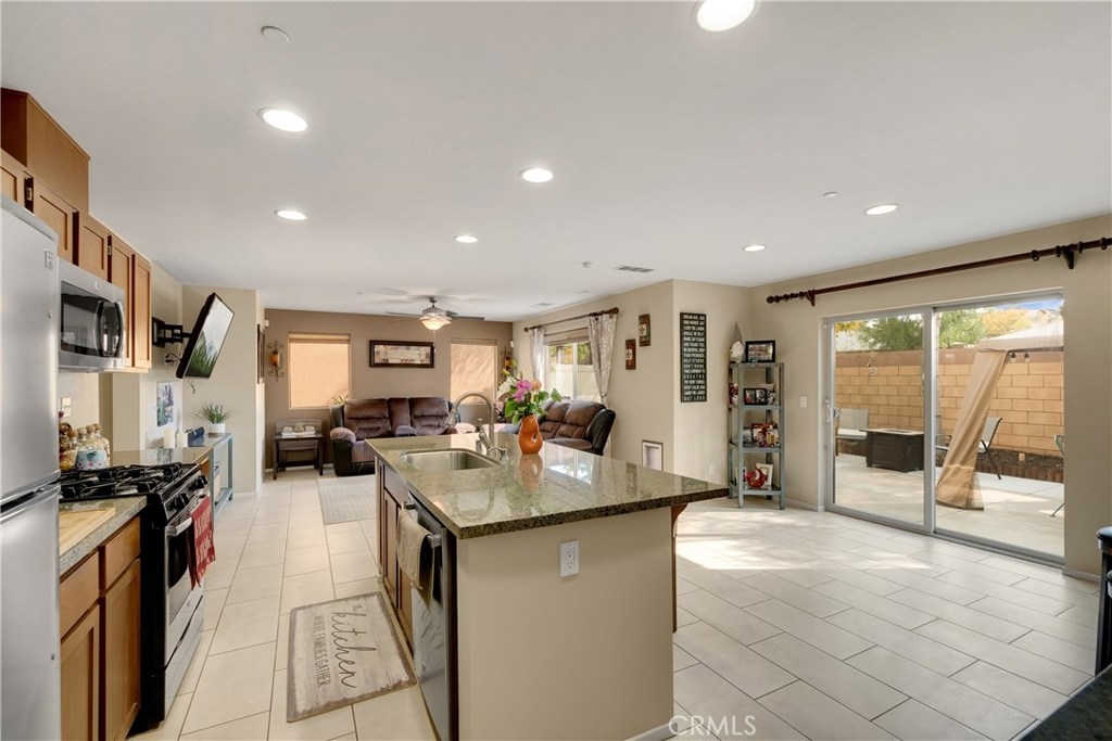 Live this Great Resort Lifestyle! Wonderful Canyon Hills Stunning Home in Planned Unit Development. Detached SFR. 3 bedrooms, 3 baths plus bonus room, currently being used as 4th bedroom. Ugraded ceramic tile throughout the downstairs. designer paint though out. Open entertainment-style kitchen featuring granite, beech wood cabinets and SS appliances. Walk-in pantry, including 30" range with hood and multi-function dishwasher. A very roomy backyard, wonderful palm trees. Large master bedroom with retreat, can be used as nursery or office with French doors. Master bath includes large shower, vanity with dual sinks, and a large walk-in closet. Canyon Hills offers over 900 acres of open space, recreation centers with 3 pool/spas, parks, dog park, tennis and basketball courts all within walking distance from this home.
