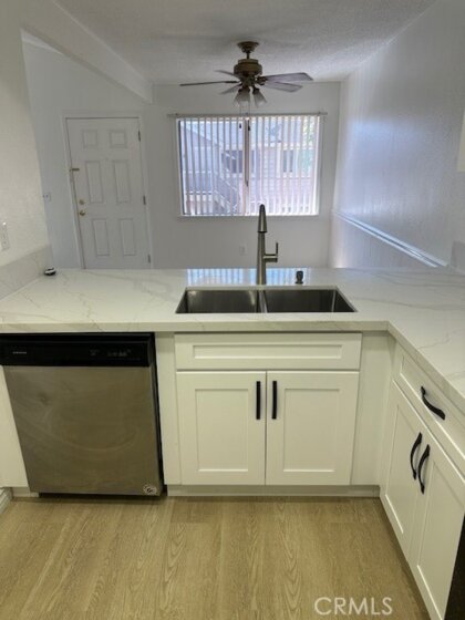 The owner just finished the entire renovation of this condo. list of upgrades includes brand new vinyl flooring in the entire condo, brand new cabinets, brand new quartz countertop, brand new vanity with quartz countertop, new baseboards, new paint in entire of the condo, brand new faucets and sinks. also, less than 18 months new washer and dryer, dish washer, microwave, and garbage disposal. Ready to move in upstairs corner unit with large balcony, very private with only one sharing wall, no one living below or above the unit. The condo has two large bedrooms and it's conveniently located near schools, park, grocery market, restaurants, and the lake of course. Commute friendly near both 74 and 15 freeways. Very open and airy feeling with generous living space and oversized kitchen and lots of cabinets and counters. The unit also features a large dining area that leads to the spacious living room and a large balcony with views. This condo sits on top of it's own one car garage, and also has one assigned parking space.