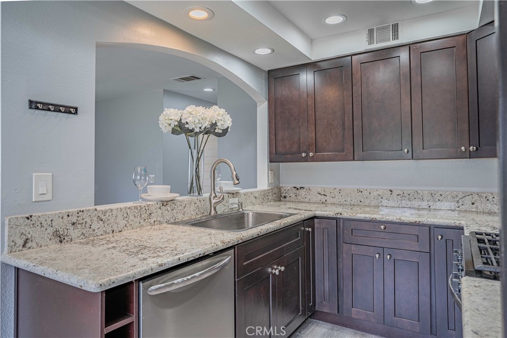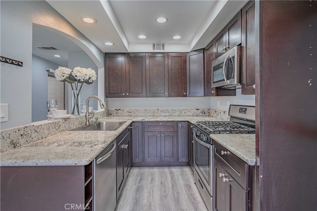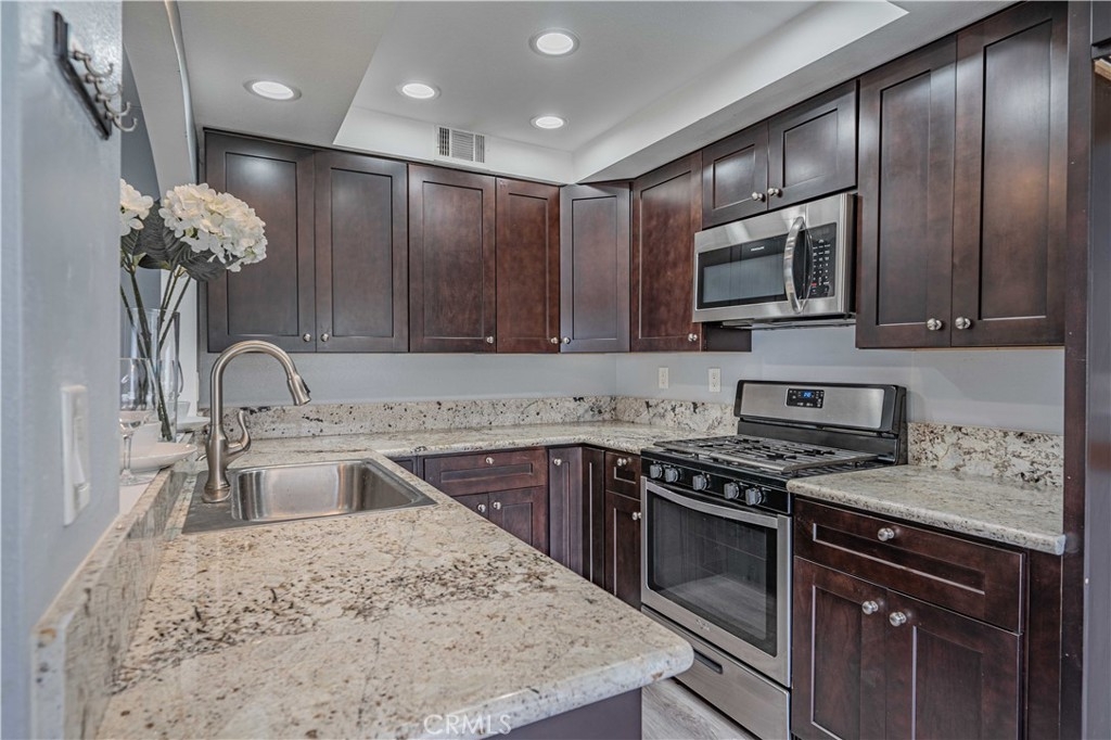 Super cute ground level 2 bedroom 2 full bath condo in beautiful Lake Elsinore! This end unit condo offers effortless living with its inviting dining room, spacious living area, and convenient indoor laundry set-up. Step outside to your own private patio, perfect for enjoying leisurely afternoons with pets or hosting BBQ gatherings. The single-car garage offers room for a car with additional storage. Situated within walking distance of the community pool & spa and just minutes away from shopping, dining, and the inviting lake! This condo has been recently remodeled with granite countertops & new cabinets adding a touch of elegance.