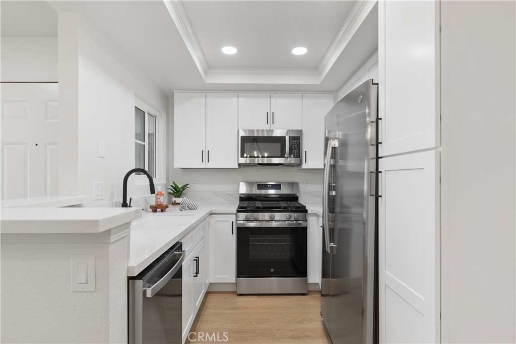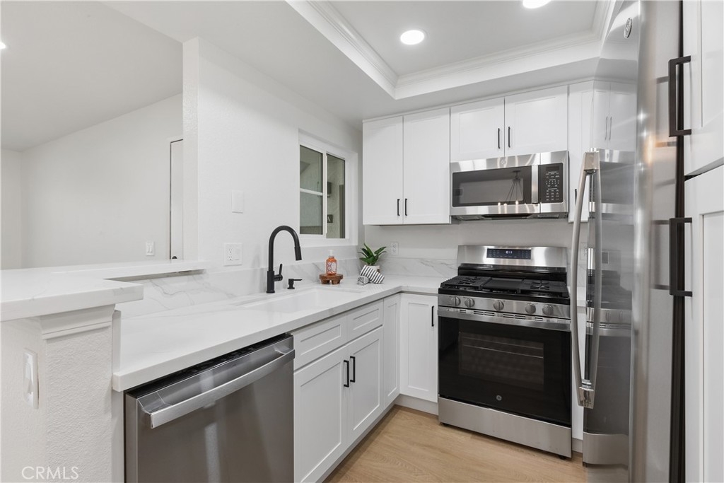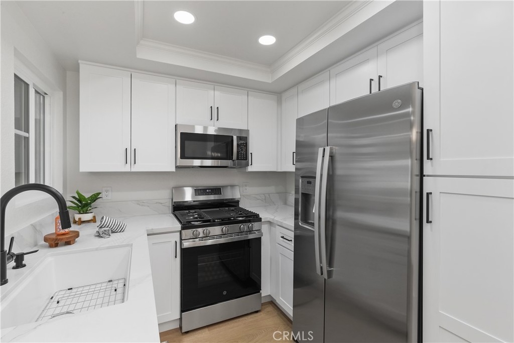 BEST VALUE IN ALL OF LAKE ELSINORE! BACK ON THE MARKET! RUN TO SEE THIS NEWLY REMODELED HOME! Discover modern living in this beautifully remodeled condominium located in the sought-after gated community of Lido at Lakeshore. This stylish two-bedroom, two-bathroom home spans approximately 785 square feet and boasts contemporary upgrades throughout. Step inside to find gorgeous white oak vinyl wood plank flooring that flows seamlessly through the open floor plan. The kitchen is a chef's dream, featuring brand-new white cabinets with sleek black hardware, Carrara Quartz countertops, a large 32-inch white sink, and new stainless steel GE appliances. Both bathrooms have been thoughtfully updated with designer tile and new modern farmhouse-style vanities, adding a touch of luxury to your daily routine. The condo also offers brand-new canned lighting and stylish lighting fixtures in the dining room and bathrooms, along with new interior and closet doors, ensuring every detail is perfect. Stay comfortable year-round with central AC and heating and enjoy the convenience of washer and dryer hookups onsite. Step outside to your sizeable patio, perfect for relaxing or entertaining guests. The community also offers low HOA fees and access to a sparkling pool. Plus, you'll have the convenience of a one-car garage and an additional private parking spot. Location is everything, and this home delivers. Just minutes away from the Lake Elsinore Marina and RV Resort, you'll have endless opportunities for outdoor play and entertainment. Additionally, you're just down the street from multiple grocery stores, restaurants, coffee shops, and shopping, with easy access to the freeway for a smooth commute. Don't miss the chance to own this turnkey home in a prime location!