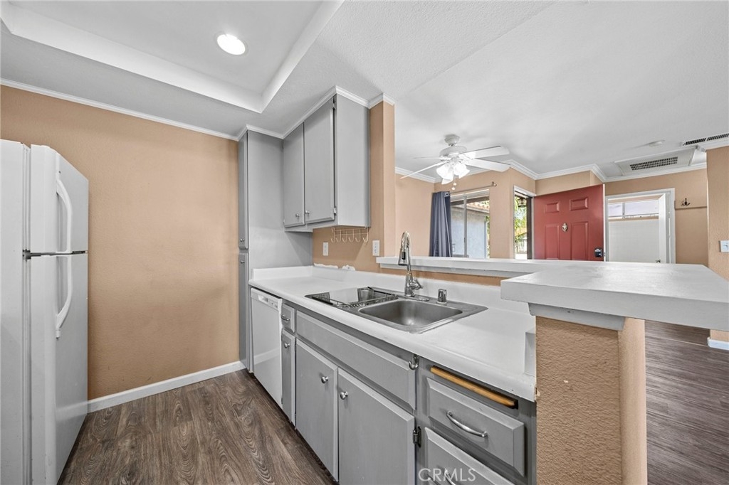 Welcome home to this charming 2 bedroom, 2 bathroom condo nestled in the heart of Lake Elsinore. Perched on the top floor, this condo offers not only privacy but also a delightful view of the surroundings. The community amenities are a standout feature, with an inviting pool, convenient garage space for your vehicle, and gates providing peace of mind. Inside, you'll be greeted by updated flooring that complements the condo. The recently upgraded AC unit ensures your comfort year-round. Location is key, and this condo doesn't disappoint. It's commuter-friendly, conveniently close to the 15 freeway and the Ortega overpass, making your daily commute a breeze. Plus, you're just a stone's throw away from grocery stores, gas stations, and delicious restaurants, adding to the convenience of your lifestyle. Don't miss out on the opportunity to make this amazing condo yours. Schedule a tour today and experience the charm and convenience it has to offer.