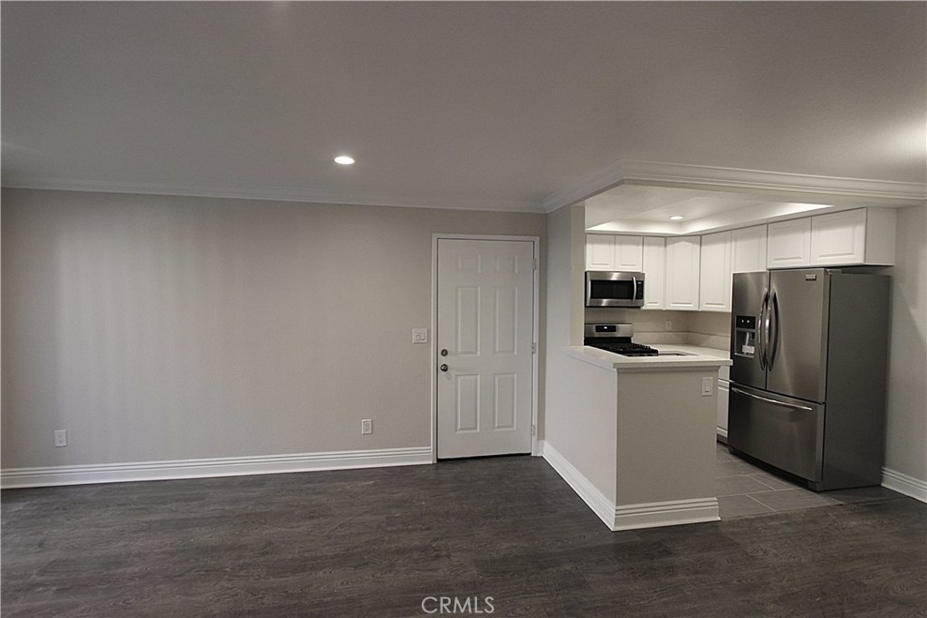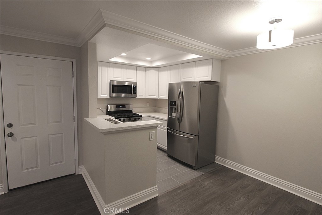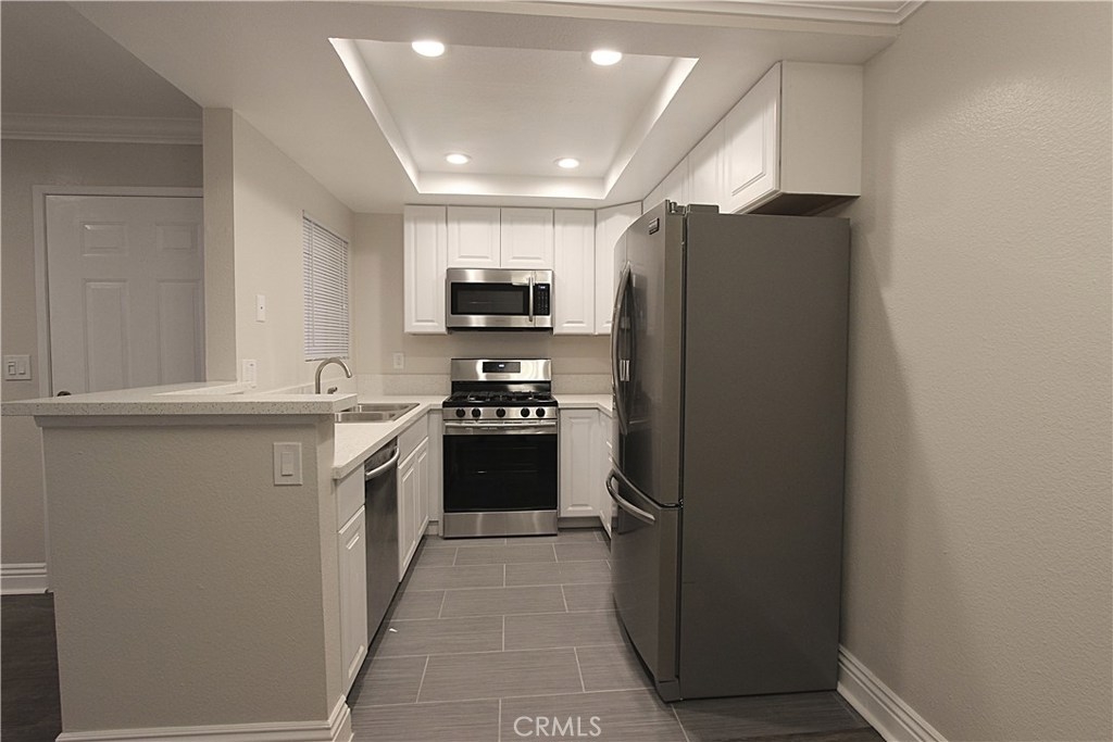 Welcome to Lido at Lakeshore in Lake Elsinore. This ground floor unit was renovated in late 2017 and has been rented to the same tenant since. The property received a contemporary renovation to include grey laminate wood floors throughout, with grey tile in the kitchen and bathrooms. The kitchen was redesigned to maximize space and offers bright white cabinetry with white quartz countertops complimented by stainless steel appliances, including refrigerator. The spacious family room opens to a large private covered patio with laundry closet. All through the property is tall baseboards and crown molding with recessed lighting in all the right places, ceiling fans in each of the bedrooms and contemporary light fixtures in the dining room along with each of the two full bathrooms. Lido offers two gated entrances, along with private off street parking, and a community pool and spa. This unit also includes an oversized detached one car garage. This is a great value for a move-in ready condo!