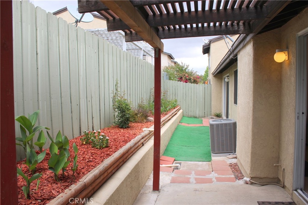 Super clean single-story condominium close to park and shopping. Newer water heater, air conditioner, and furnace. Remodeled bathroom with frameless shower & comfortable elongated toilet seat. Ceramic tile floors throughout, energy efficient ceiling fans & water efficient toilet. Convenient interior laundry with gas dryer hook-up. Spacious closet in master bedroom. High ceilings for that spacious feel and fireplace for those chilly nights. Entertainer's delight with easy to clean kitchen counter top. Enjoy the low maintenance backyard with easy access from the master bedroom & dining room. Nicely landscaped with patio cover.