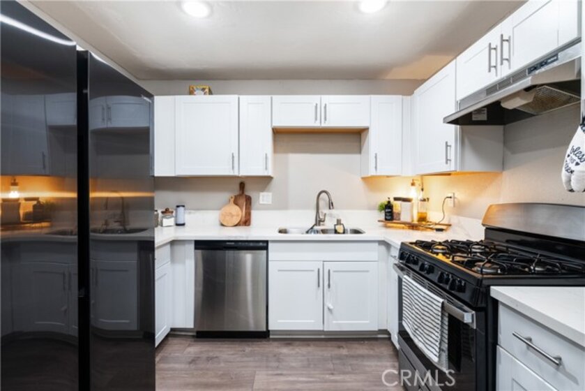 Beautiful move-in ready condo! This single story, downstairs, condo has been renovated with new paint, new flooring, new fixtures, and remodeled kitchen. Located near freeways, shopping and schools. Schedule a showing today!