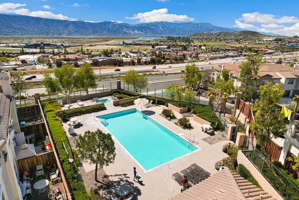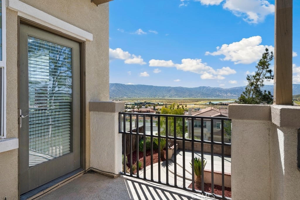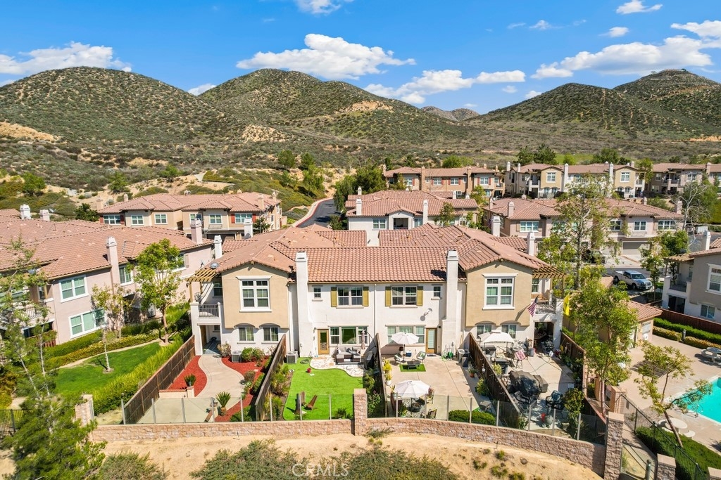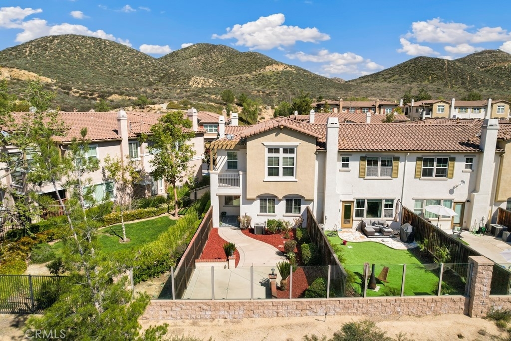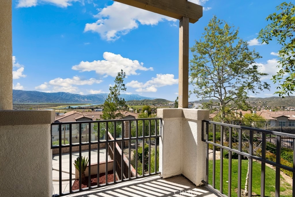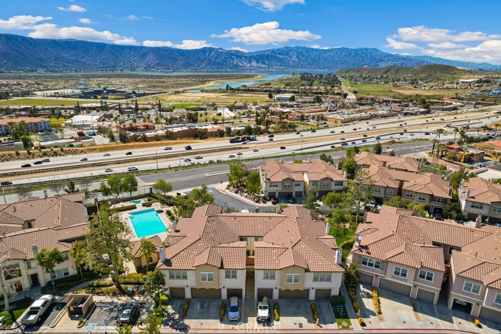 Breathtaking Lake Views & Beautifully Upgraded! Welcome to one of the best units in the highly sought-after Vista Del Lago community! This beautifully maintained 3-bedroom, 2.5-bathroom townhouse features the largest floor plan available—and it's the only one with a two-car garage. Located in a prime end-unit position with no neighbors on one side, you’ll enjoy incredible lake views and spectacular sunsets from the kitchen, backyard, and private primary room balcony. The kitchen is open and bright, showcasing rich wood cabinetry, granite countertops, and matching stainless steel appliances. The kitchen and dining area open directly to the backyard through a brand-new sliding glass door, creating a seamless indoor-outdoor living experience that's perfect for entertaining. Step into the beautifully landscaped backyard, ideal for gatherings, relaxing evenings, or giving pets a place to play. Recent upgrades include brand-new carpet and fresh interior paint, making this home move-in ready. The primary suite is a peaceful retreat, offering a large walk-in closet, private balcony, and stunning views of the lake and surrounding mountains. Vista Del Lago offers fantastic community amenities just a short walk away—including a pool, spa, playground, and walking paths. You'll love the easy access to the 15 Freeway, making commuting to San Diego or Orange County a breeze. Conveniently located near restaurants, shopping, and everyday essentials. Don’t miss this must-see home—it’s truly one of the best units in the complex!