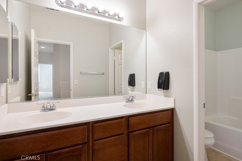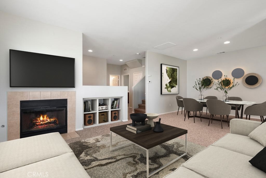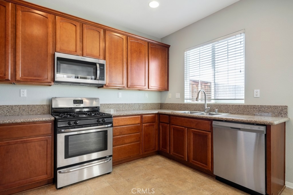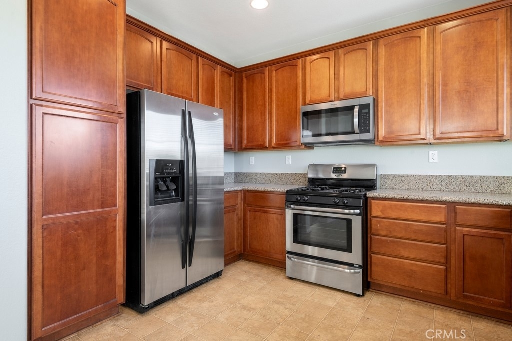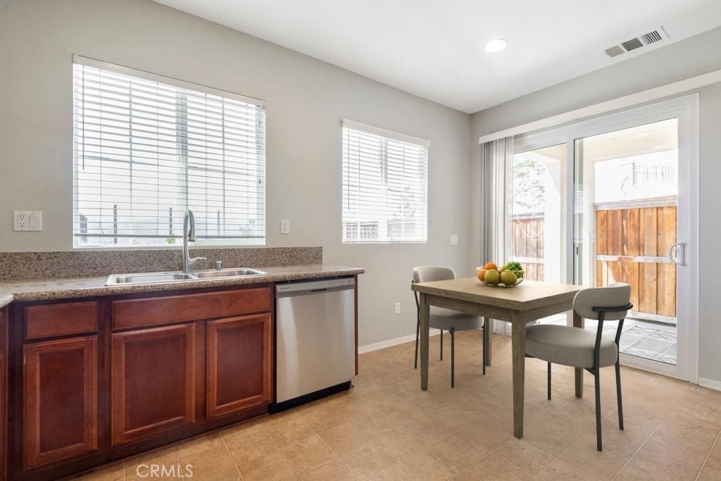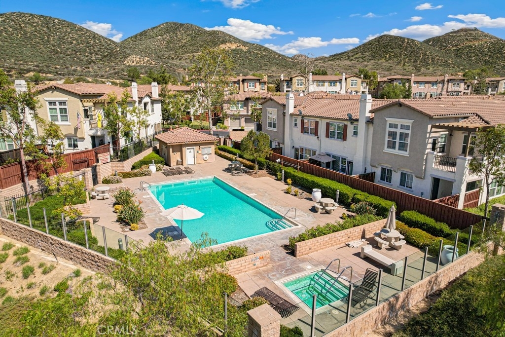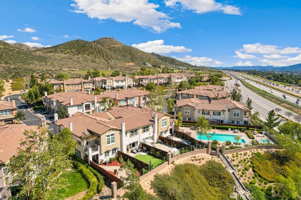Breathtaking Lake Views & Beautifully Upgraded! Welcome to one of the best units in the highly sought-after Vista Del Lago community! This beautifully maintained 3-bedroom, 2.5-bathroom townhouse features the largest floor plan available—and it's the only one with a two-car garage. Located in a prime end-unit position with no neighbors on one side, you’ll enjoy incredible lake views and spectacular sunsets from the kitchen, backyard, and private primary room balcony. The kitchen is open and bright, showcasing rich wood cabinetry, granite countertops, and matching stainless steel appliances. The kitchen and dining area open directly to the backyard through a brand-new sliding glass door, creating a seamless indoor-outdoor living experience that's perfect for entertaining. Step into the beautifully landscaped backyard, ideal for gatherings, relaxing evenings, or giving pets a place to play. Recent upgrades include brand-new carpet and fresh interior paint, making this home move-in ready. The primary suite is a peaceful retreat, offering a large walk-in closet, private balcony, and stunning views of the lake and surrounding mountains. Vista Del Lago offers fantastic community amenities just a short walk away—including a pool, spa, playground, and walking paths. You'll love the easy access to the 15 Freeway, making commuting to San Diego or Orange County a breeze. Conveniently located near restaurants, shopping, and everyday essentials. Don’t miss this must-see home—it’s truly one of the best units in the complex!