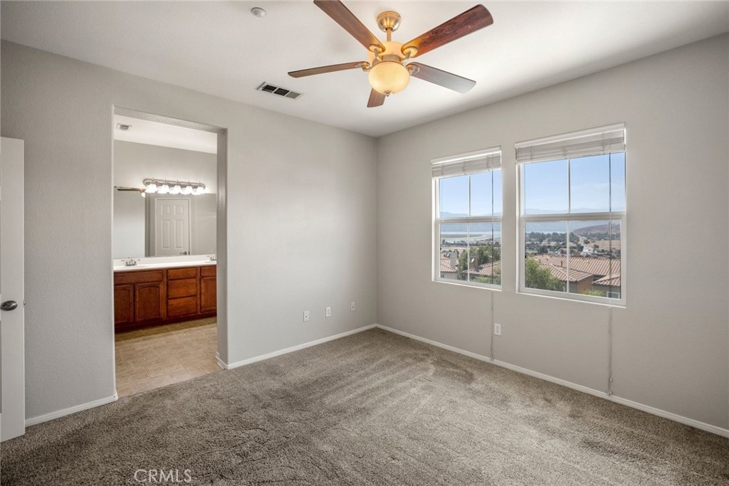 Beautiful 3 bedroom, 2.5 bathroom, 2 story condo with gorgeous hills and lake views in the community of Vista Del Lago in Lake Elsinore! Enjoy high ceilings, lots of natural light, and an open floor plan. The family room offers an inviting fireplace, ceiling fan, and flows to the gourmet kitchen with a breakfast bar. The kitchen features stainless steel appliances, marble-style countertops, and a walk-in pantry. The primary bedroom offers a large walk-in closet, dual sinks in the primary bathroom, a soaking tub, and a walk-in shower. The outdoor patio is perfect for entertaining and enjoying the expansive views. Additional property highlights include the inside laundry room and 1 car garage. Community amenities include the swimming pool, spa, park, playground, and walking paths. Convenient to nearby schools, shopping plazas, restaurants, and easy access to major freeways!