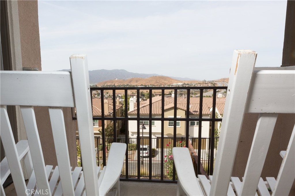 View! Vista Del Lago community built in 2007. Charming 3 Bedroom, 2 1/2 Bath Townhome with 1,527 Sq. Feet - Lots of Room! Upon entering you encounter an open view of the living room with inviting gas fireplace and dining room. The Kitchen is just beyond the living and dining rooms and has granite counters with plenty of warm wood cabinets. Look out outside of the kitchen to experience the grassy backyard and view of the lake. Great way to start the morning or end your day! Also on the downstairs floor is a spacious half bath, laundry room with direct access door to the 2 car garage. Upstairs is light and airy! At the top of the stairs is a full bathroom with dual vanity sinks and separate shower and toilet. Next are two spacious secondary bedrooms. The master bedroom has grand appearance with a view and welcoming balcony for your morning or afternoon relaxing time. Large dual vanity sink cabinet, separate toilet and shower with tub. A master walk-in closet completes this master retreat. This HOA community includes a pool, spa, park and common area access and maintenance. Close to local shopping and dining and easy access to 15 freeway. Will not last!