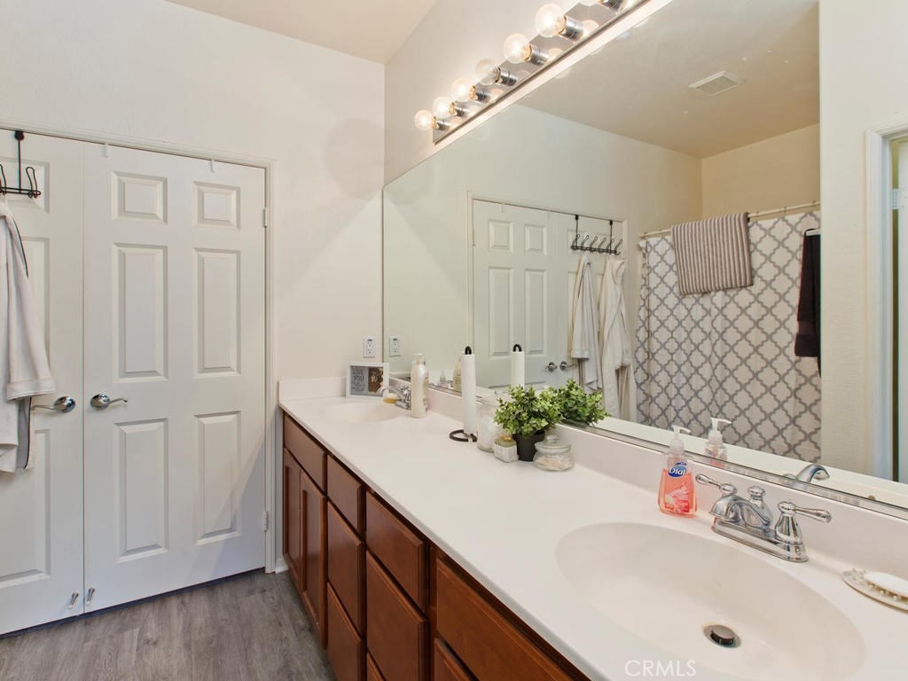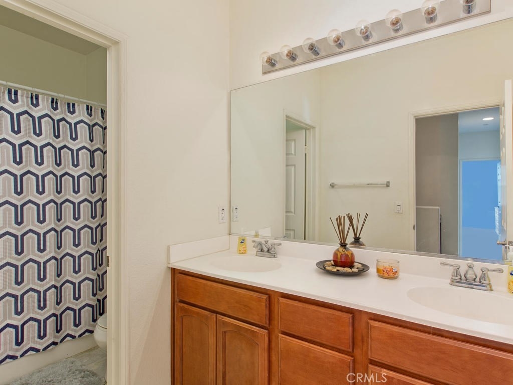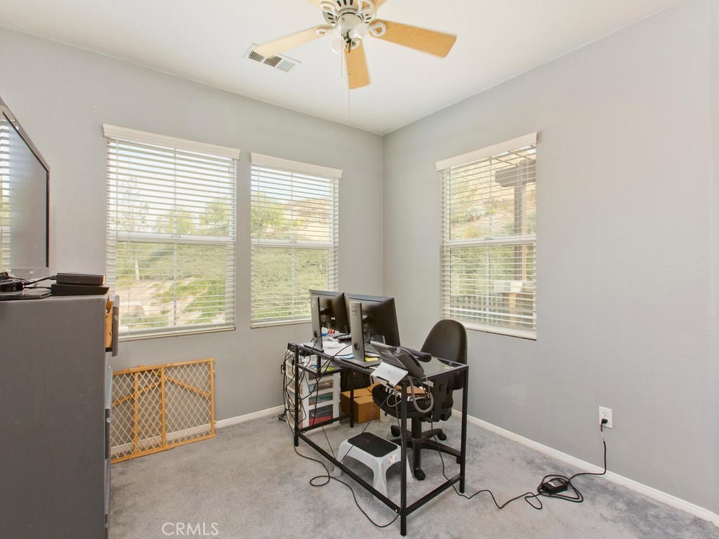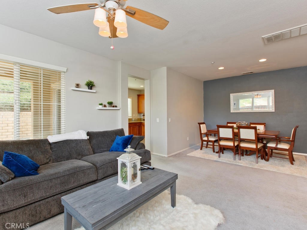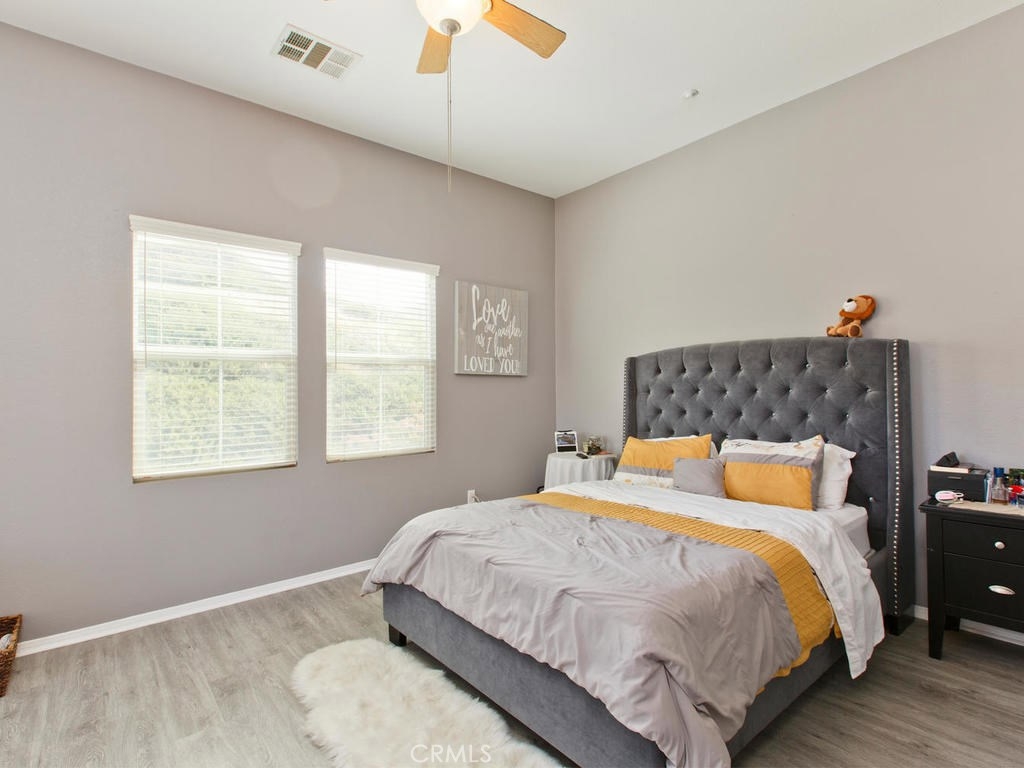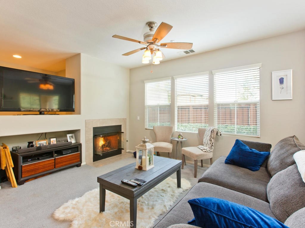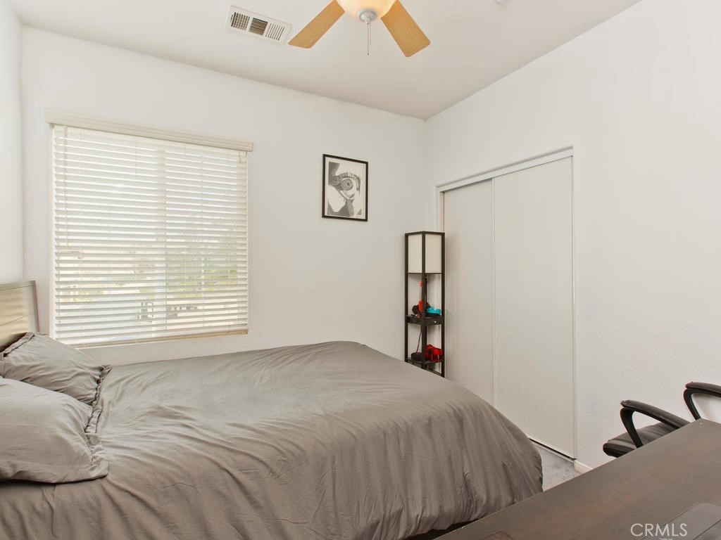 Don't miss this rare opportunity for the largest floor plan in the community! This home features 3 bedrooms and 2 1/2 bathrooms, Neutral colors thru-out, high ceilings, granite counters in the kitchen and a two car attached garage with direct access into the home from the garage and nice size indoor laundry room with built-in cabinets. The master bedroom has a balcony overlooking the hills, dual sinks and soaking tub and large walk-in closet. there is a large sliding glass door off the kitchen that leads to your nice backyard with covered patio. Great location off of the 15 freeway and close to shopping.