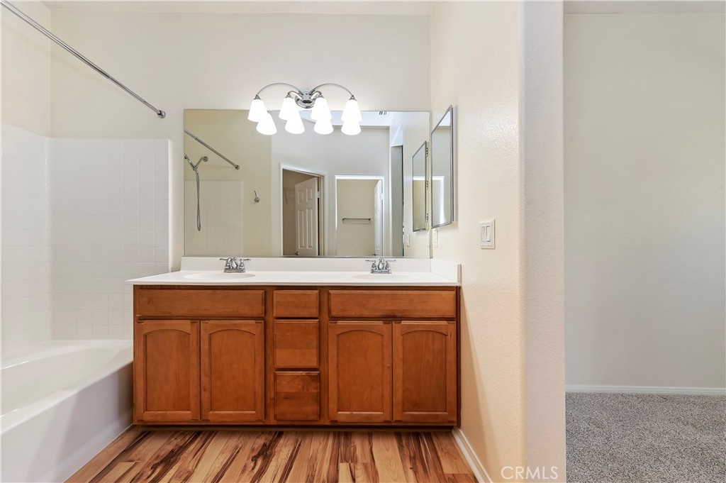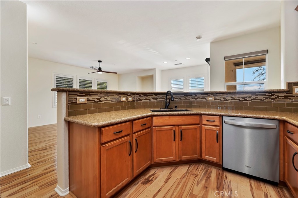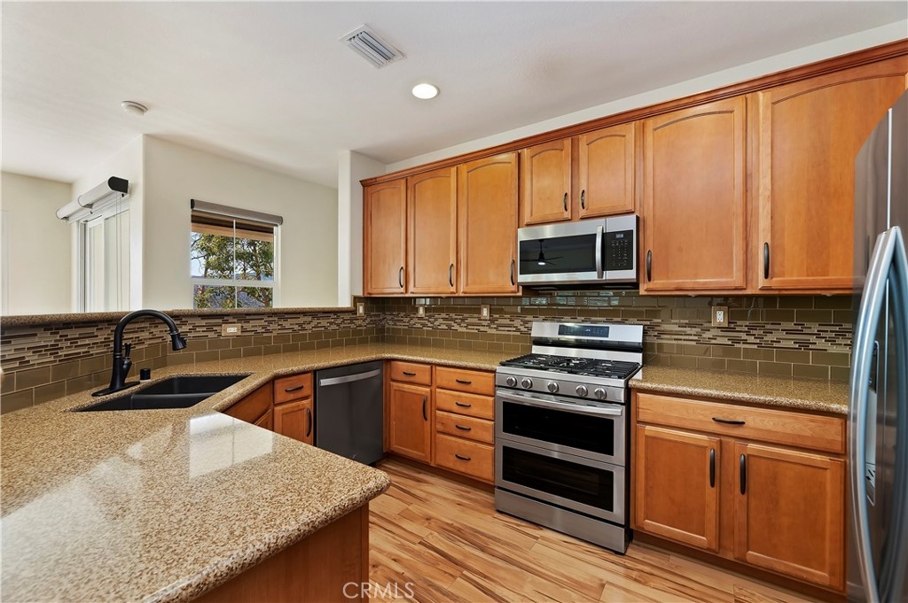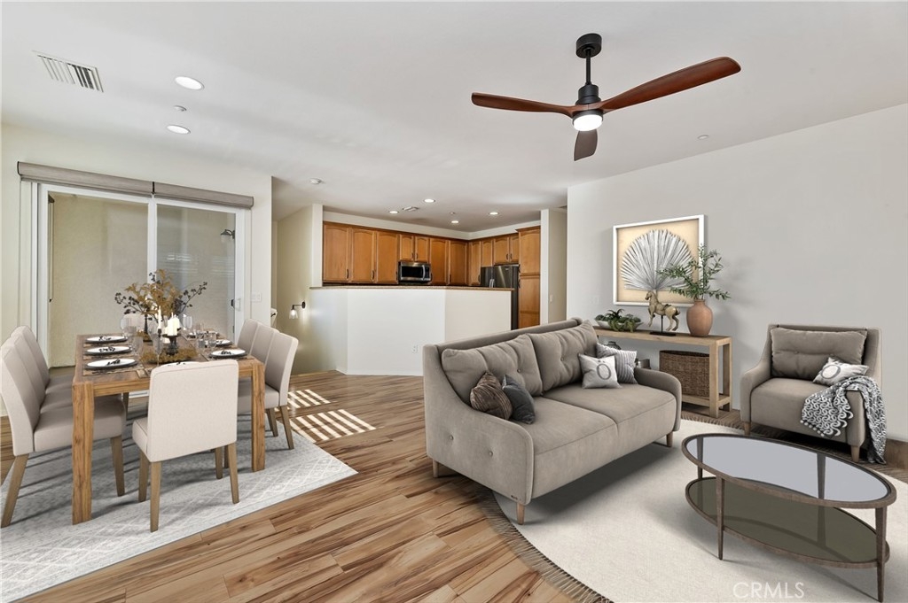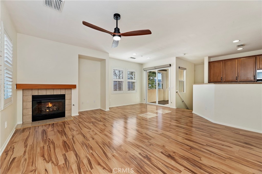 Prime location, recently remodeled, meticulously maintained, and highly upgraded. Panoramic views, new flooring, new paint, new appliances, kitchen updated, window treatments, plantation shutters, soft close cabinets, new hardware, and so much more. This home overlooks both the stadium and the lake...stunning blue water views from multiple areas within the community. Ample guest parking, sparkling pool and spa, along with other community features. This type of highly updated end unity with unobstructed views is very, very rare. One of the only homes with a spacious greenbelt/lawn just steps from your front door. First floor entry, direct garage access with laundry and additional storage closet, then up to the main living area with kitchen, family room with fireplace, spacious covered patio, then two bedrooms and two bathrooms. Must see...best value between Corona and Temecula. Dream location just off the 15 freeway, ideal for commuters. Close to shopping, schools, and parks.