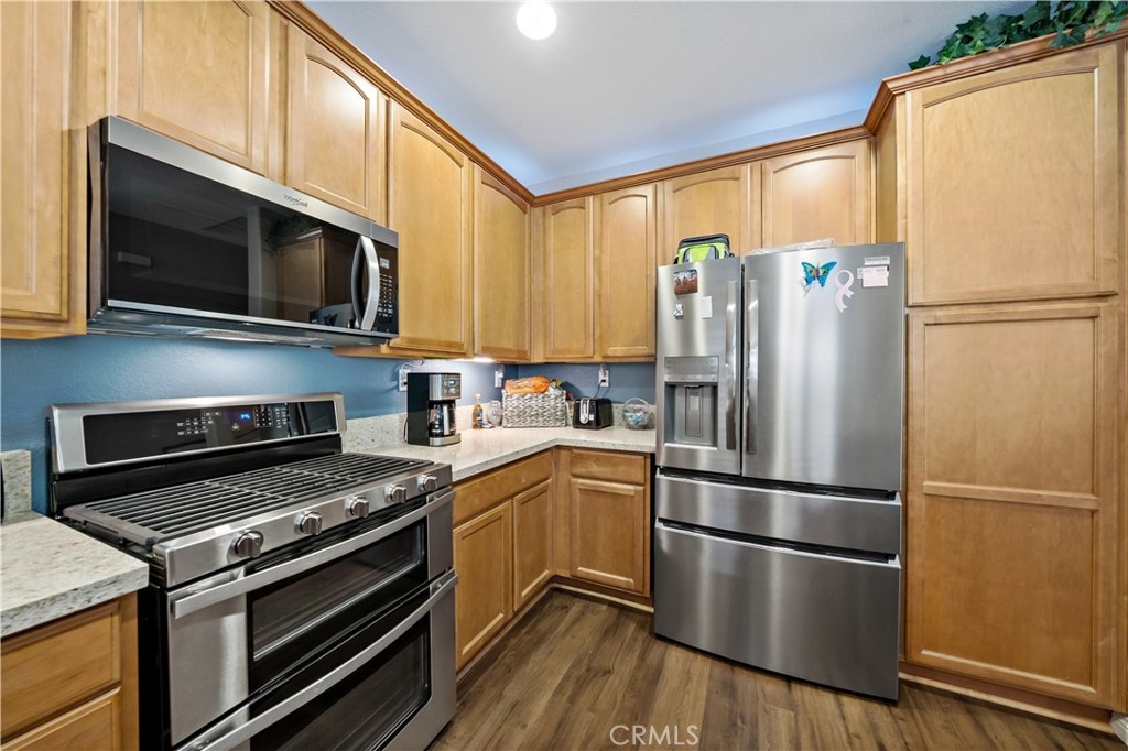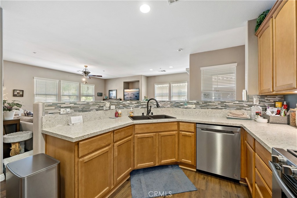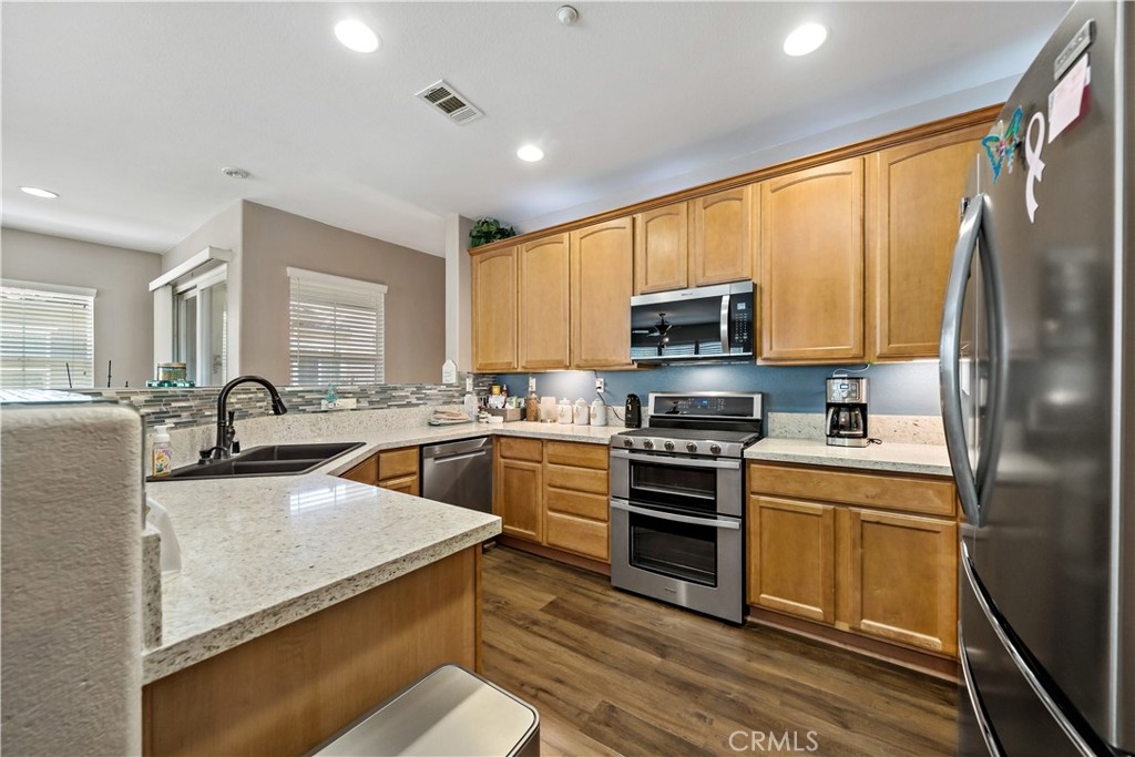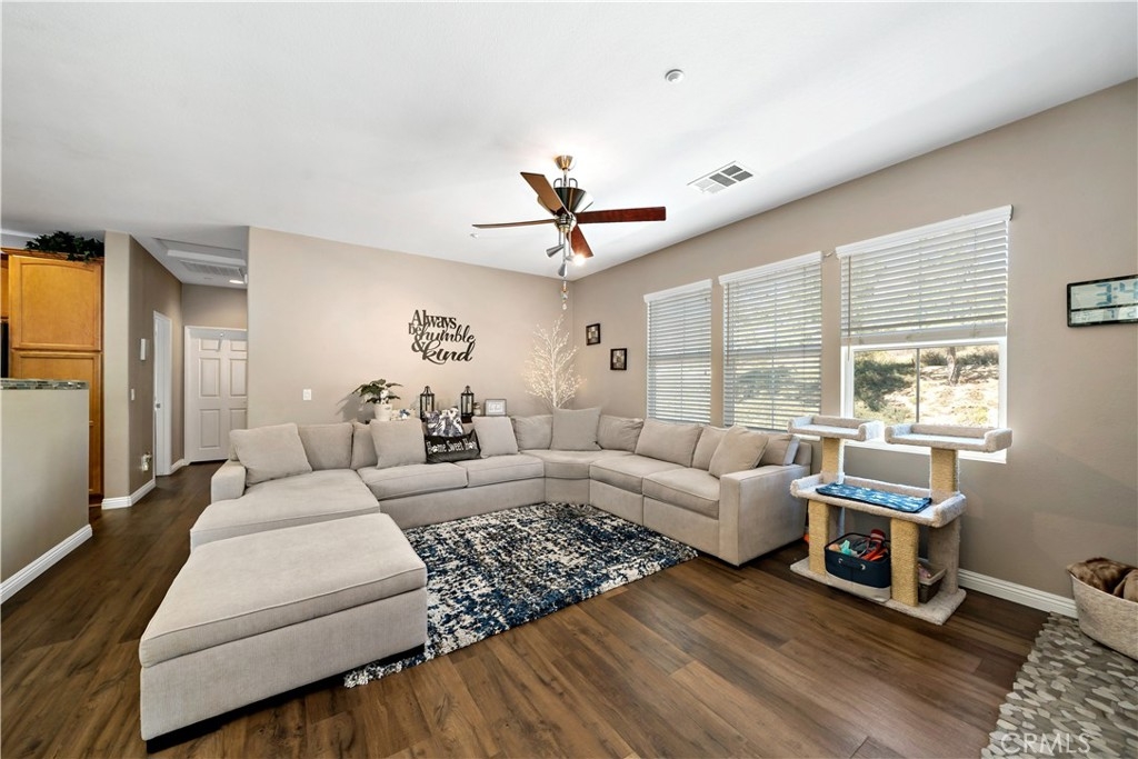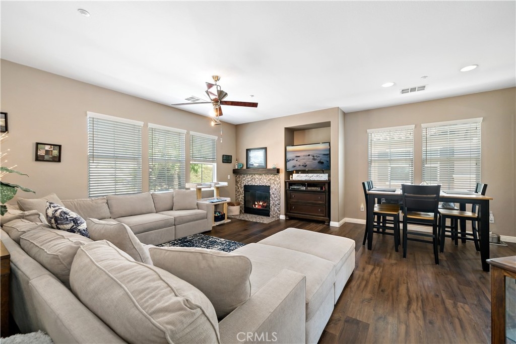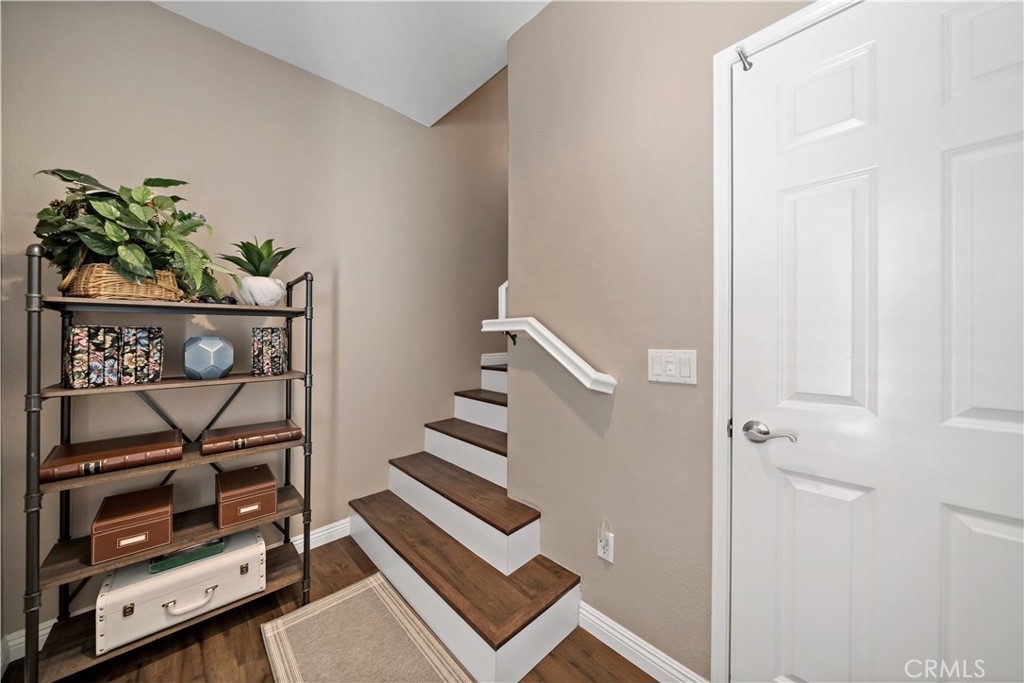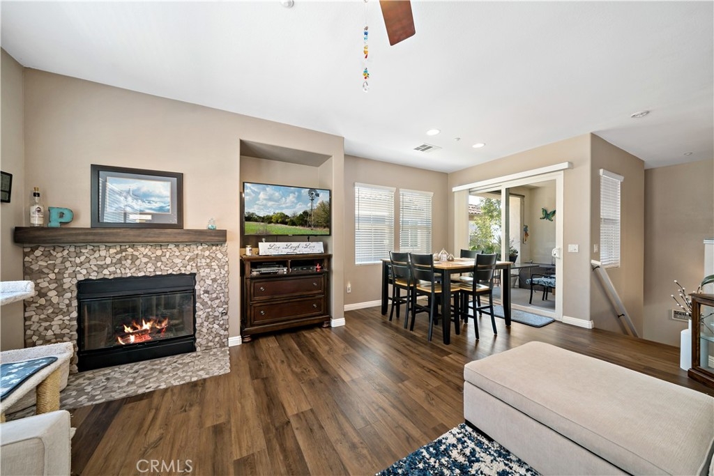 FHA Approved Complex! Step into turnkey comfort in this beautifully updated carriage-style home, offering modern upgrades and thoughtful design in one of Lake Elsinore’s most vibrant and scenic communities. This light-filled private and peaceful upper-level unit features newer LVP flooring throughout, including the stairs, upgraded kitchen counters, new appliances, designer fixtures, and a refreshed fireplace surround—creating a warm, contemporary space that’s truly move-in ready. Enjoy the convenience of an attached one-car garage with laundry hook-ups, plus a full-size driveway accommodating a second vehicle. Additional guest parking is located nearby for ease when entertaining. Beyond the home, residents enjoy access to a well-maintained HOA that offers resort-style amenities, including a sparkling pool and spa with panoramic views of Lake Elsinore, Storm Stadium, and the surrounding valley. A private playground and beautifully landscaped common areas make this community perfect for both relaxation and recreation. Situated minutes from Southern California’s largest natural freshwater lake, this location is ideal for those who love boating, paddleboarding, or simply enjoying lakeside sunsets. Nearby, you'll find scenic hiking trails, lush parks, retail centers, and dining options, all within a short drive. Commuters will also appreciate the quick access to major freeways connecting to Riverside, Orange County, and San Diego. Whether you're a first-time buyer, downsizing, or looking for a low-maintenance retreat with a view, this thoughtfully updated home delivers both value and lifestyle in a growing, picturesque neighborhood. Professional photos will be added this Thursday.