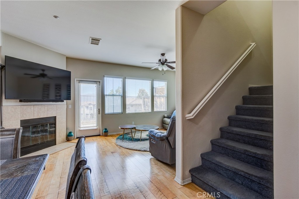 Welcome to Desirable Vista Del Lago Condominium. This well maintained unit has 3 bedrooms and 2.5 Bathrooms. The back balcony area offers views of the mountains and the lake! Open floor plan with large great room centered by fireplace, laminate and tile flooring downstairs. Open kitchen has plenty of cabinets, brand new sink and brand new white counter tops. and a big walk in pantry. Master bedroom also offers a view of Elsinore lake and mountains, full upgraded bath and separate shower, walk in closet appliances washer, dryer refrigerator are included in the sale. One attached garage and indoor laundry room. Located just minutes away from 1-15, enjoy close proximity to local shopping and dinning.Association pool and spa, and a play ground for kids. don't miss the opportunity to own a place in a growing and vibrant community.
