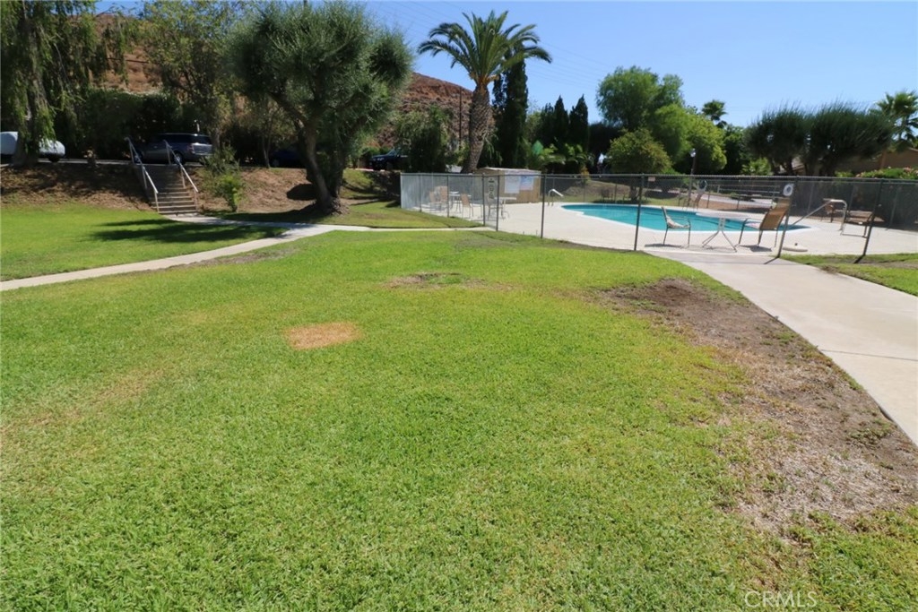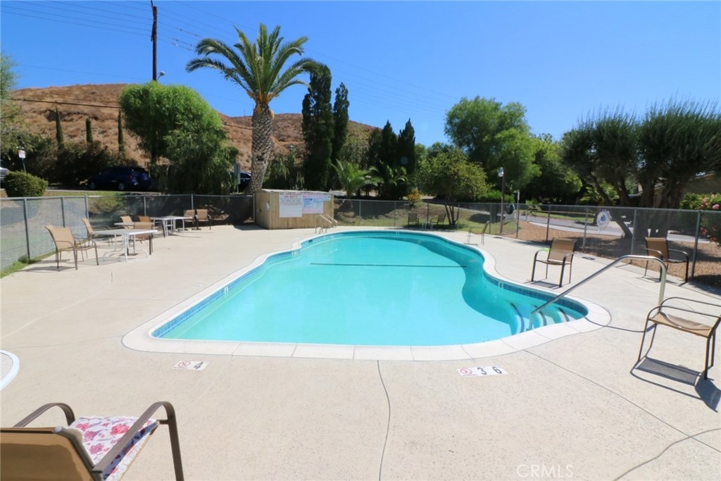 Retirement living, 55+, in "Lake Elsinore Village"... This unit is in the rear of complex, quiet end unit. 871 Sq/Ft, 2 bedrooms, 1 1/2 Baths plus a patio / sun room with mountain views. Next to Senior Citizens Activity Center, and minutes to Downtown Lake Elsinore, Stadium Baseball Field & Lake Elsinore... Community has pool, laundry facilities, library and clubhouse.. This unit has ample guest parking.. Home needs TLC, paint, carpet, etc.