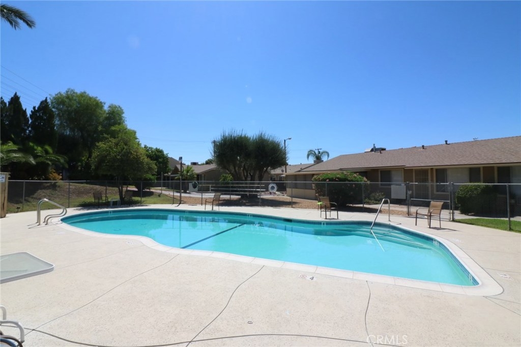 Retirement living, 55+, in "Lake Elsinore Village"... This unit is in the rear of complex, quiet end unit. 871 Sq/Ft, 2 bedrooms, 1 1/2 Baths plus a patio / sun room with mountain views. Next to Senior Citizens Activity Center, and minutes to Downtown Lake Elsinore, Stadium Baseball Field & Lake Elsinore... Community has pool, laundry facilities, library and clubhouse.. This unit has ample guest parking.. Home needs TLC, paint, carpet, etc.