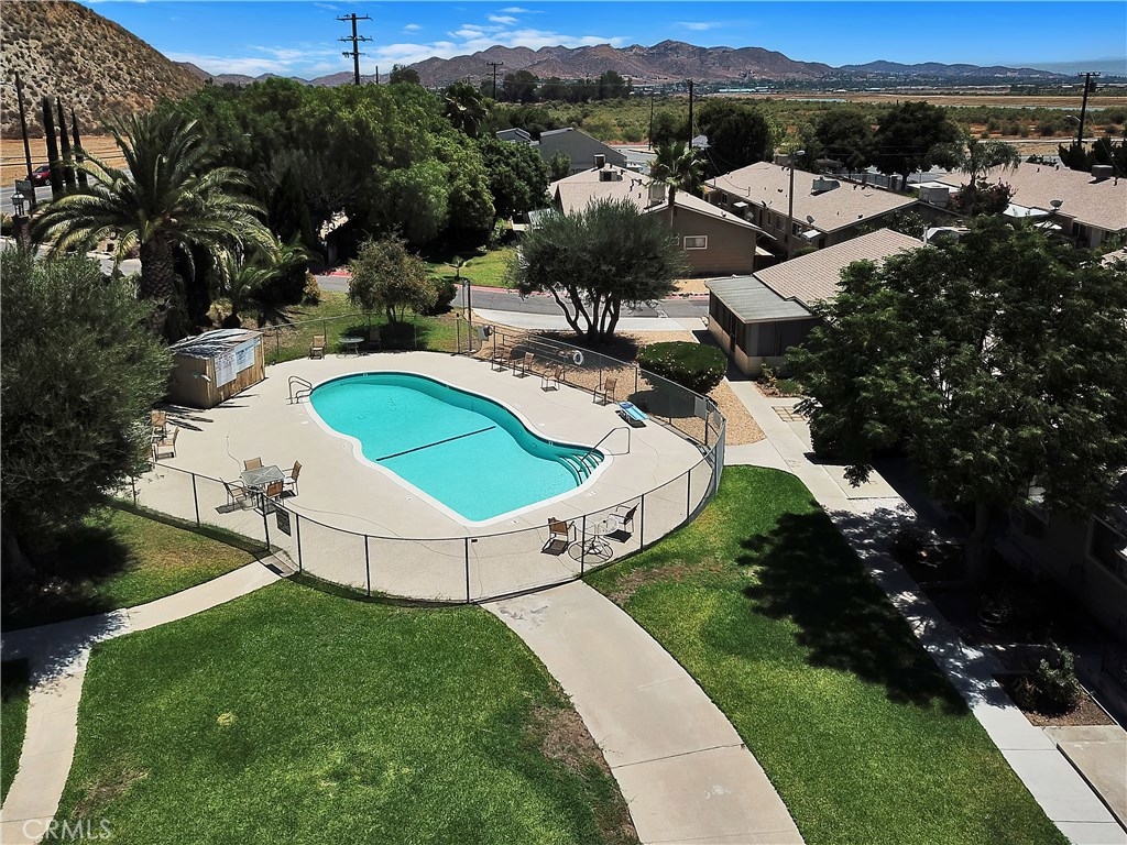 Perfect location! View of Lake Elsinore from the front patio and back porch. Close walking distance to the HOA pool, spa and clubhouse. Wonderful Senior 55+ community! 2 bedroom, 1 1/2 bath, covered front patio and also has back porch to walking path. This condo is one story and entrance is at gound level with just two steps to the front door. White faux wood blinds and grey carpet inside. Kitchen is open to the living room with plenty of windows. Great investment home or perfect for owner occupants too. Close to the lake and downtown.