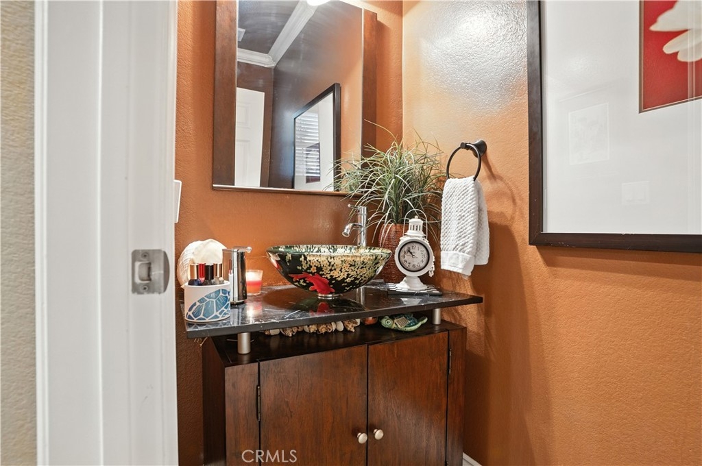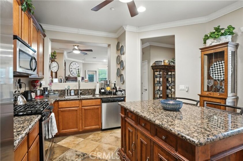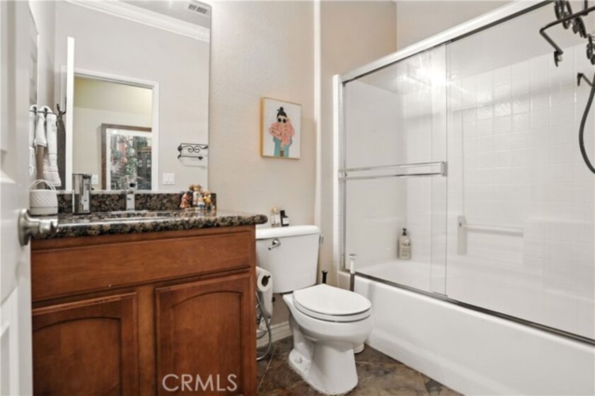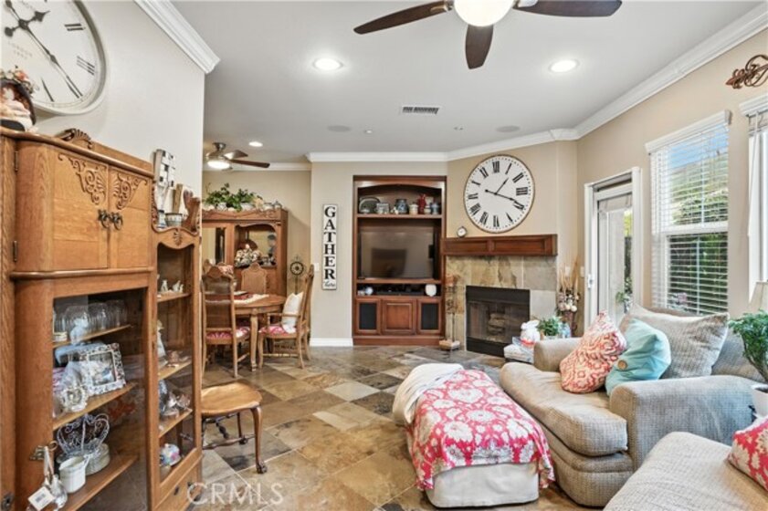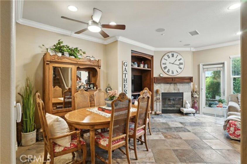 Tucked in the desired Vista Del Lago community this model quality 3 bed 2.5 bath townhome features a custom kitchen island, decorative crown molding and slate-stone tile floors. The kitchen offers a spacious pantry, granite counters tops, stainless steel appliances and rich maple wood cabinetry. The living room offers a cozy fireplace, a built-in entertainment niche, and built in surround sound, plus a screen door that invite a cross-breeze. Additionally the glass door and large windows fill the home with natural light but with added window tint to help against heat. A convenient powder room downstairs with a beautiful decorative glass bowl sink. Upstairs, the primary suite enjoys hill views, a walk-in closet with organizer and an ensuite bath with double-sink vanity. Ceiling fans and recessed lighting with dimmers throughout offer added lighting and comfort. Outdoors, enjoy a private cozy backyard with a garden, perfect for relaxing. Additionally the home features an attached long garage with direct home access that can fit 2 small cars or 1 car and motorcycle plus added storage space. Enjoy lake views within the community, plus a playground, pool, spa and additional parking space available. Convenient close to the lake, shopping, dining. Also close to the 15 freeway, schools, storms stadium, golf, and entertainment. Contact me if you'd like to take a tour of this home.