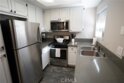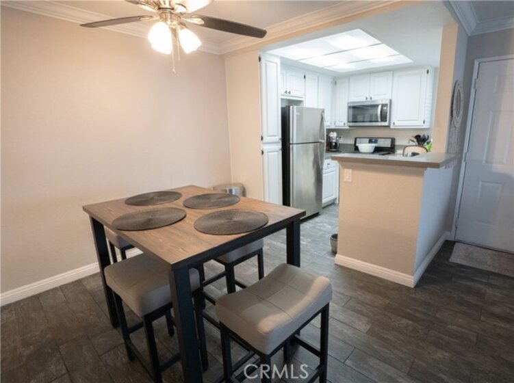 Single-story 2-bedroom, 2-bathroom corner-unit condo located in a gated community approximately 1.5 miles from Lake Elsinore. The home features tile flooring, Quartz countertops, crown molding, updated hardware, updated bathroom light fixtures, and newer carpet. Both bathrooms include tubs. Additional features include large closets, abundant storage, and freshly painted elements throughout. The property includes all major appliances (stove approx. 3 years old), washer and dryer, new HVAC and air handler, new exhaust fan in the primary bathroom, and a smart thermostat (seller willing to replace with a standard thermostat if preferred). Tile floors on a concrete slab help maintain cooler interior temperatures in summer. Parking includes a detached one-car garage (#46) with built-in storage shelf, assigned parking space (#46), and nearby guest parking. The garage has a newly installed opener programmed for both the garage and community gate and has been drywalled and freshly painted. HOA-approved shade and privacy hedge included. Community amenities include a pool, spa, recreational meeting room, landscaping, and trash service. Location offers convenient access to shopping, services, and commuter routes. Low-maintenance living with turn-key condition. Sale is contingent upon seller finding a replacement property